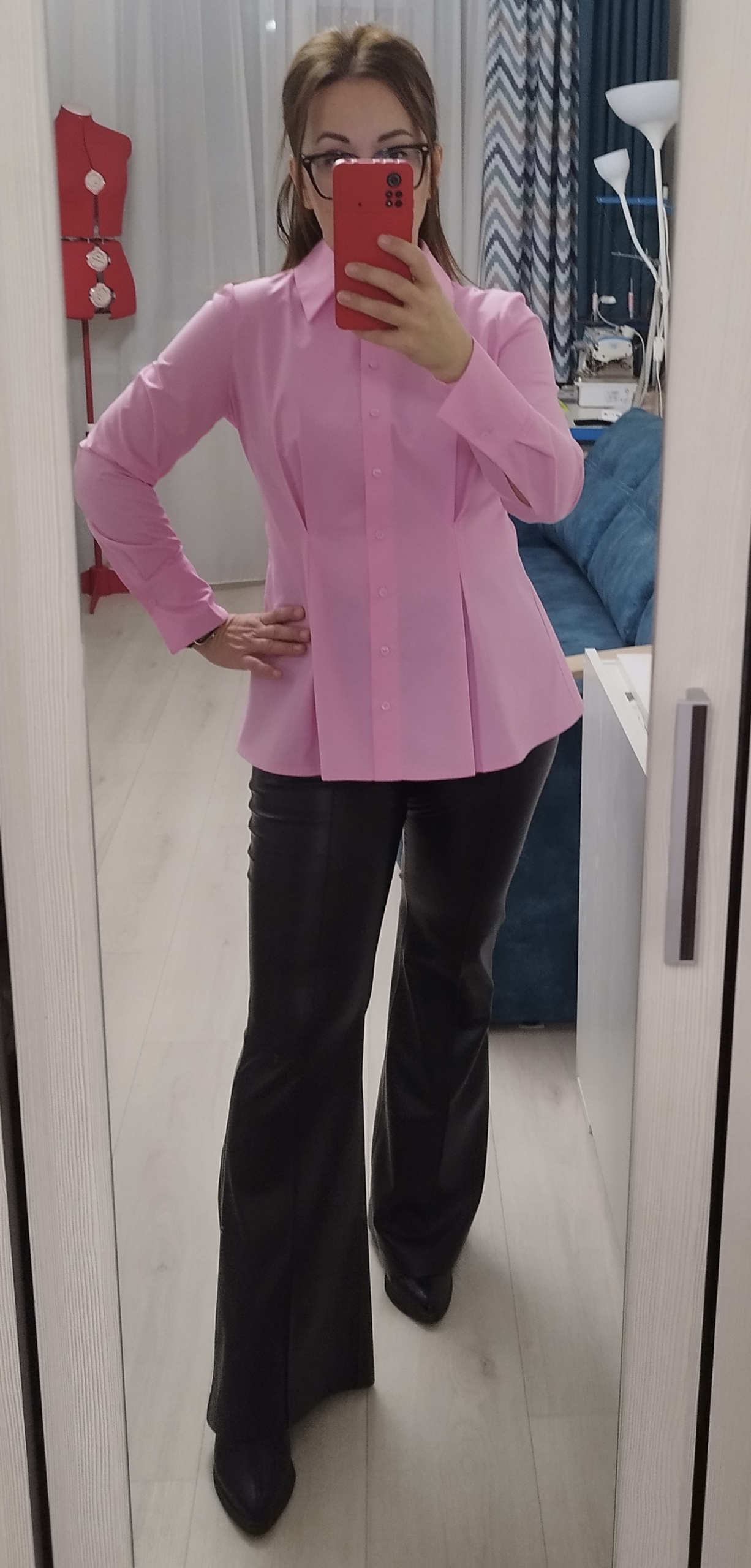 Рубашка села идеально, шила 46 размер на 92-78-103. Такая модель сделает талию там, где её нет. Моя фигура с талией)