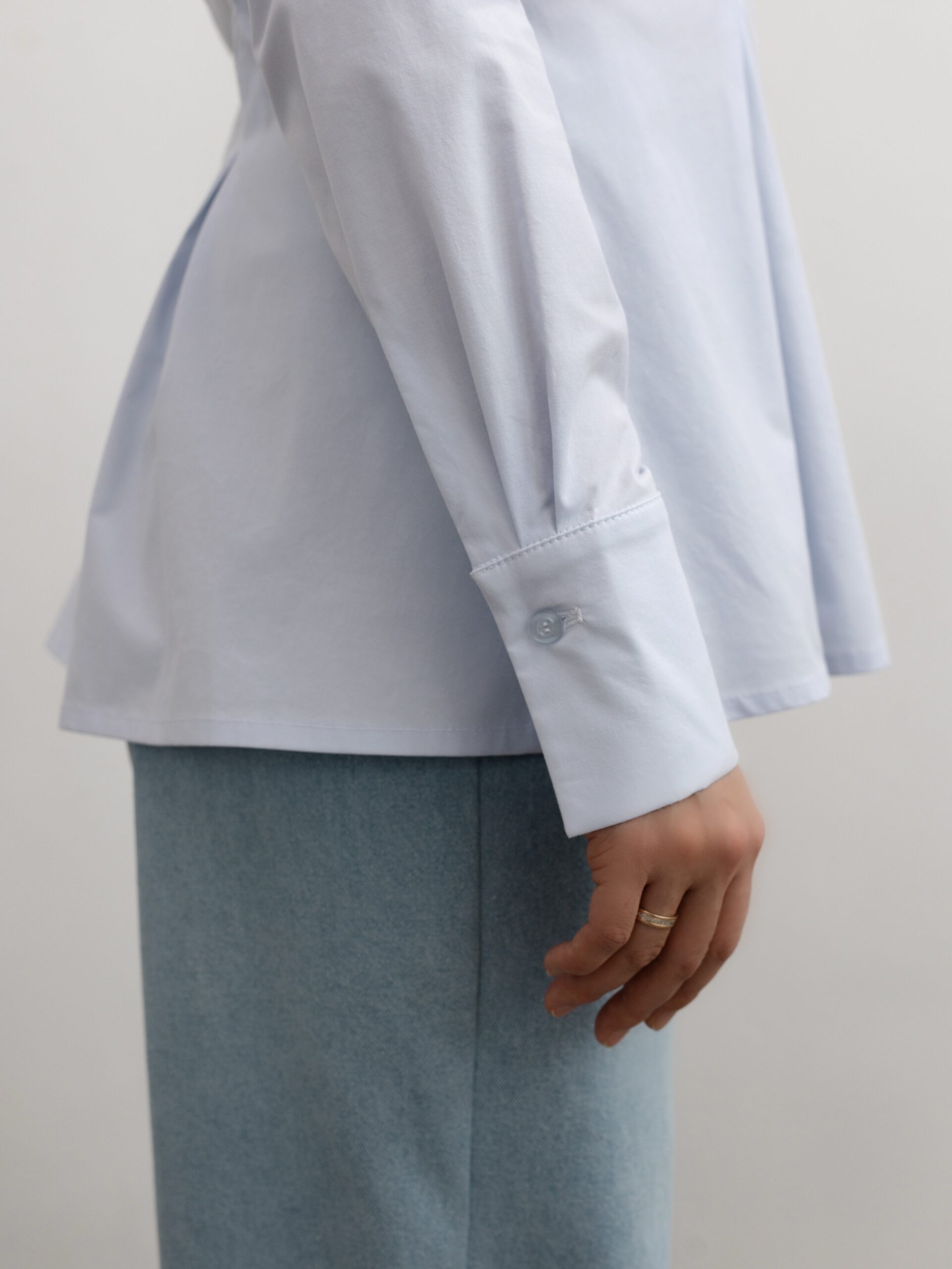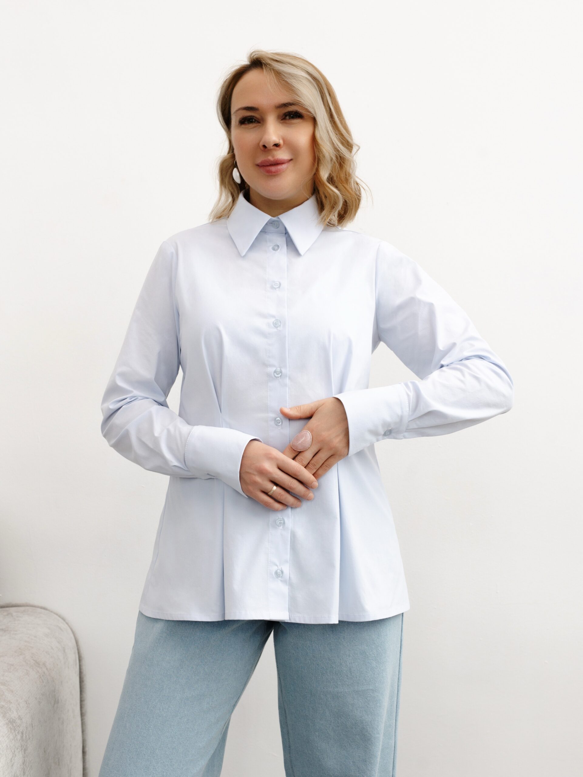 Модель Елена, блуза 44 размера рост 170 см, реальный размер (на момент фотосессии) по обхвату груди 44 рост 167 см. Параметры тела: ОГ 88 см, ОТ 74 см, ОБ 98 см. Размер выбран 44 по обхвату груди. Сшита из рубашечного поплина стрейч, плотность: 136 гр/м2, состав: хлопок 60%, пэ 37%, 3% лайкра.