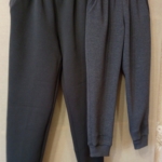 Рекомендуемые материалы – плотные трикотажные полотна, такие как футер трехнитка с начесом, флис, флис катионик, на манжеты рибана или кашкорсе, в пояс резинка шириной 3,5-4 см (если ставить одну широкую резинку), 1,5-2 см (если ставить две резинки, как в видео инструкции), длина резинки указана на выкройке в каждом размере.