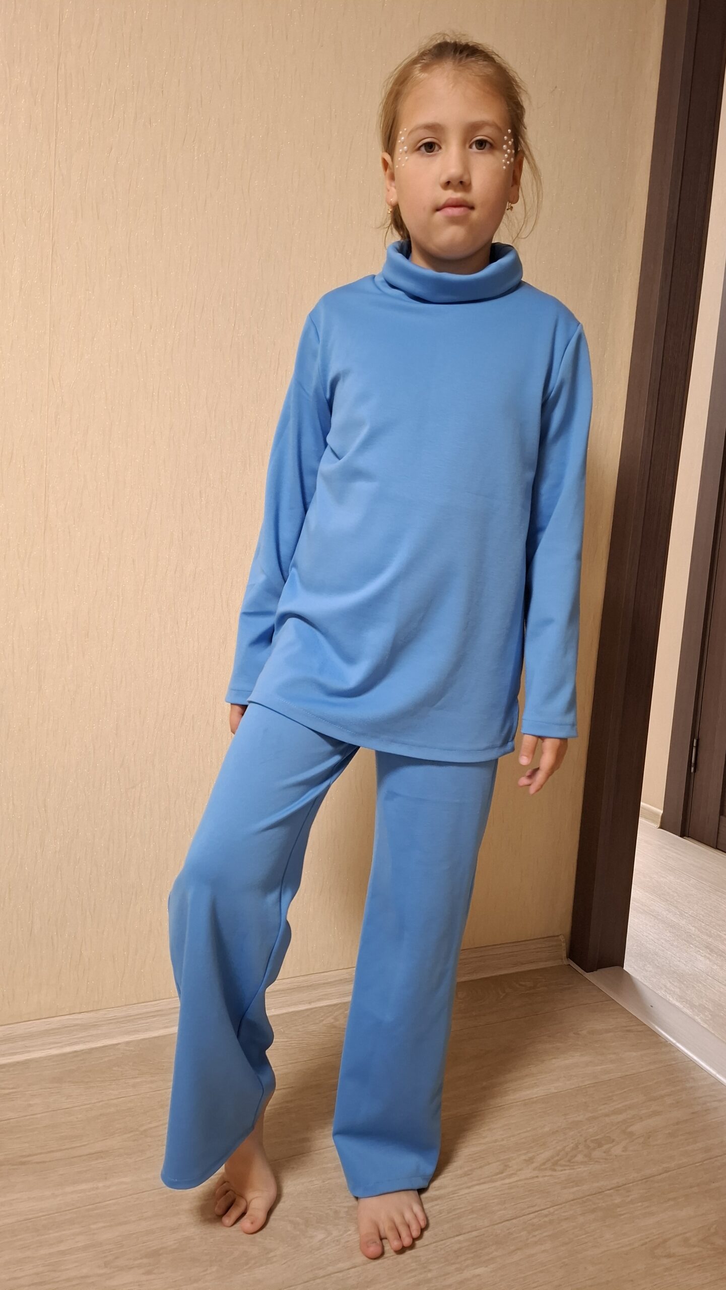 Модель Таисия, брюки на рост 146-76, реальный рост на момент фотосессии 146 см, обхват груди 78 см, обхват талии 73 см, обхват бедер 81 см. Черные брюки сшиты из трикотажа лапша, состав: 55% вискоза, 25% пэ, 20% нейлон, ширина 160 см, плотность 240 г/м2. Брюки цвета брауни из трикотажа лапша, состав: вискоза 50%, полиэстер 25%, нейлон 21%, спандекс 4%, ширина 150 см, плотность 330 гр/м2. Также на Таисии джемпер по выкройке “Лайла” и свитшот по выкройке “Элли”.
