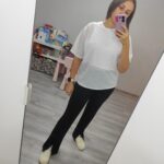 Модель брюк мне очень понравилась! Когда увидела их на Елене с туфельками просто влюбилась) Взяла размер 44,хотя обычно беру 46. Доверилась комментариям. Спасибо девчонкам, что такие нюансы в комментариях рассказывают) Сели отлично. Длину укорачивала и разрез поднимала. Лучше длину примерить сразу, по выкройке, а то потом будет сложнее переделать…)