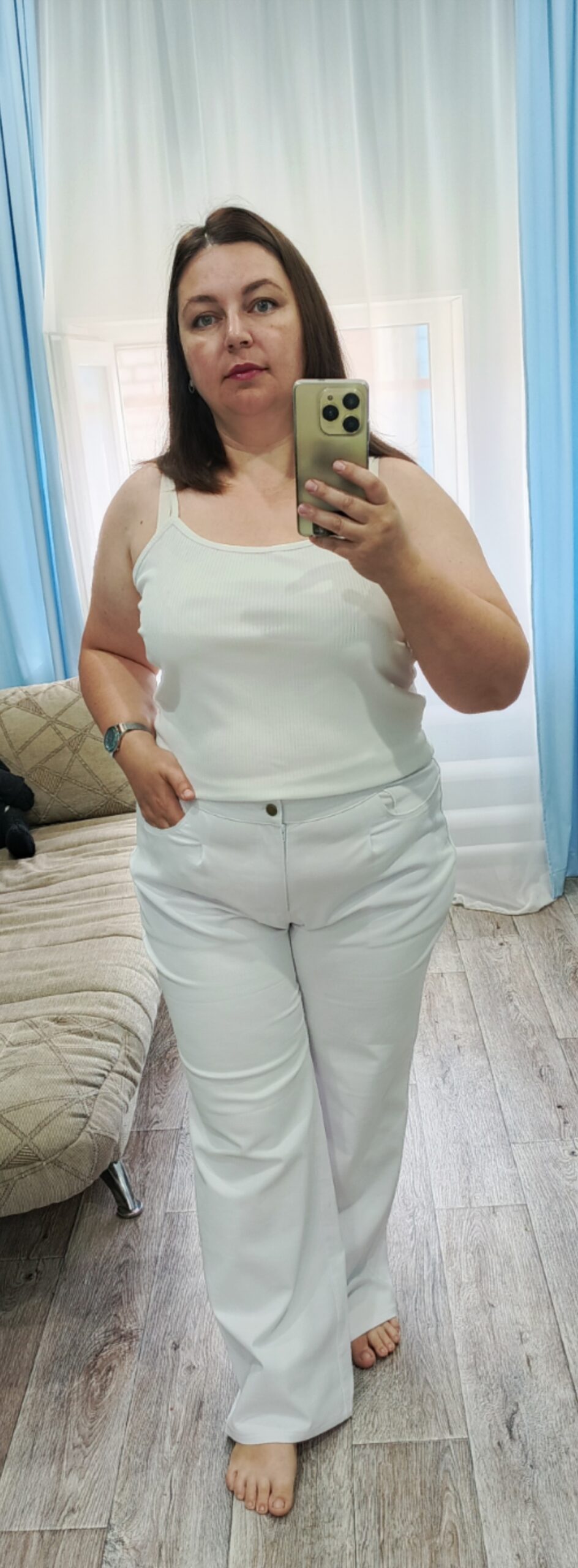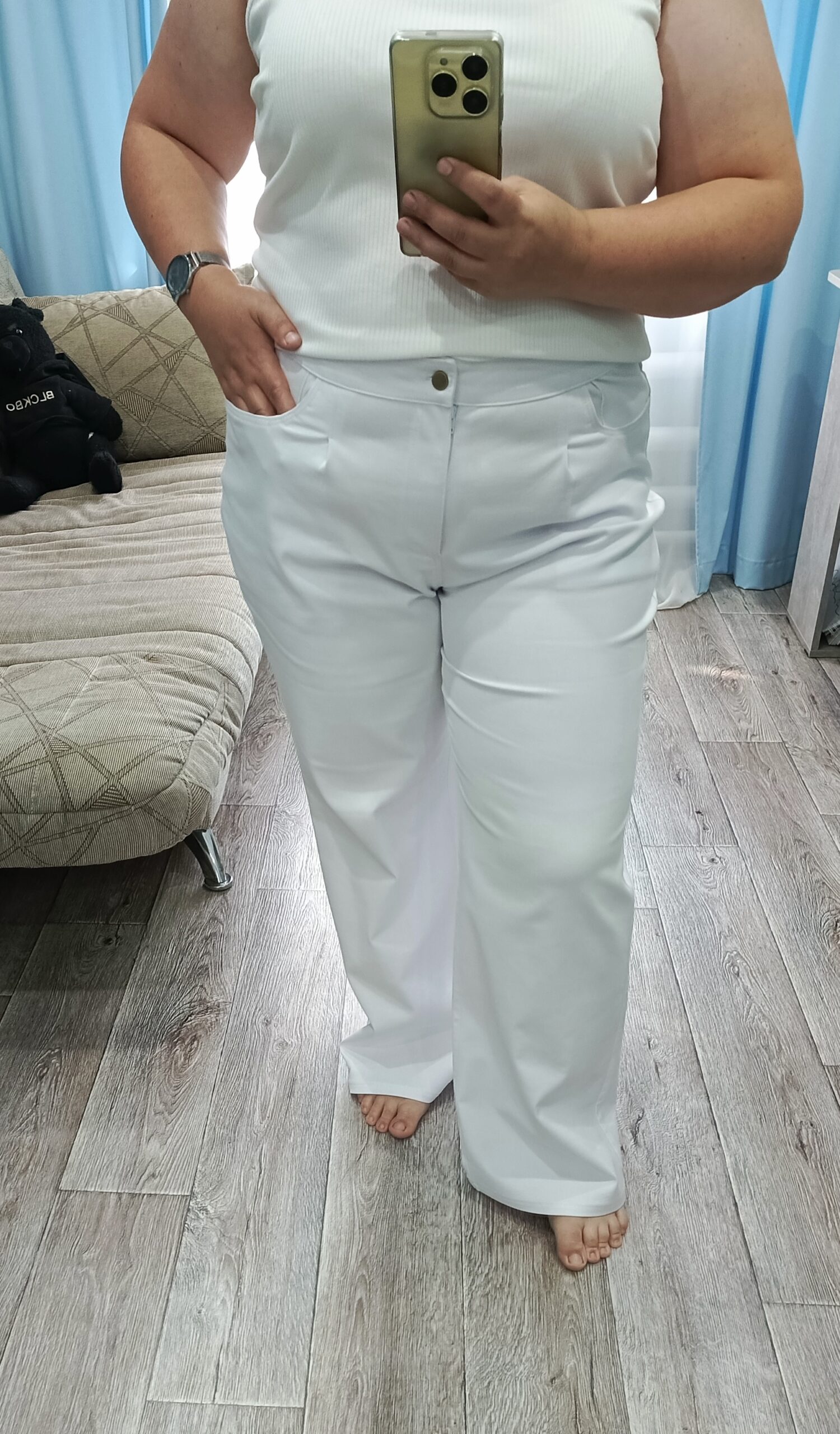Добрый вечер. Шила дочери размер 44 , брюки получились отличные , сели по фигурке , в выкройке ничего не меняла , стрелочки идеальные.