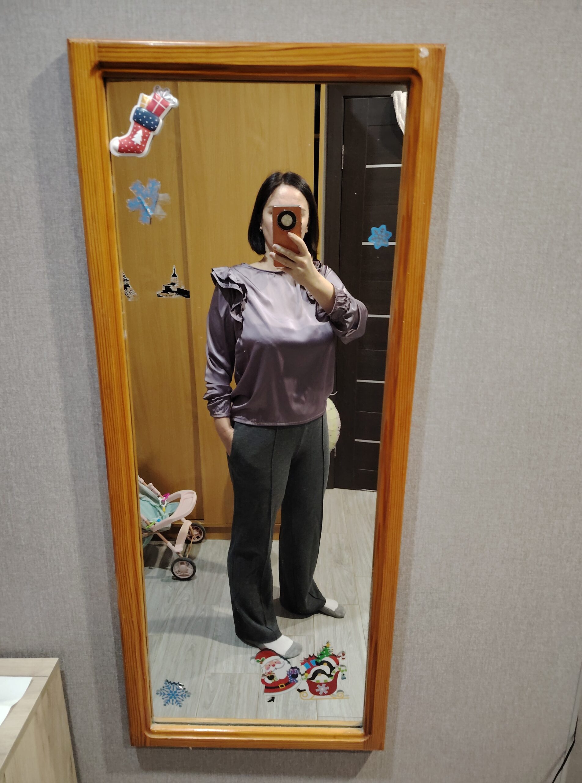 Модель Марина, брюки из трикотажа джерси 40 размера рост 164 см, реальный размер по обхвату бедер (на момент фотосессии) 40 рост 161 см (ОГ 88 ОТ 68 ОБ 88). Размер выбран по обхвату бедер.