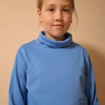 Модель Таисия, джемпер на рост 146-76, реальный рост на момент фотосессии 146 см, обхват груди 78 см, обхват талии 73 см, обхват бедер 81 см. Сшит из трикотажа лапша, состав: вискоза 50%, полиэстер 25%, нейлон 21%, спандекс 4%, ширина 150 см, плотность 330 гр/м2. Также на Таисии брюки по выкройке “Абель”.