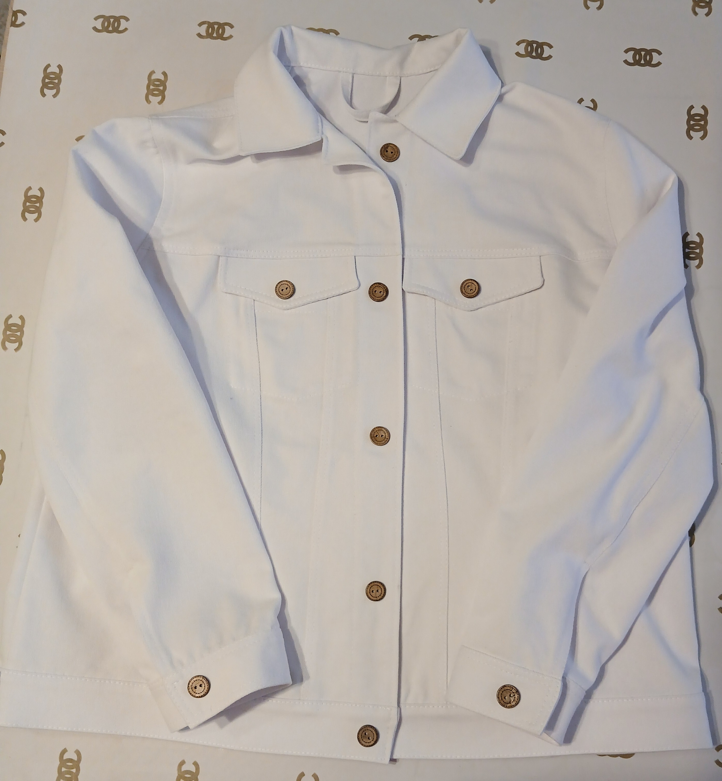 Также вам понадобится дублерин для укрепления деталей воротника, планки, манжет, 11 джинсовых пуговиц, хлопок для подкладки карманов 24 см.
