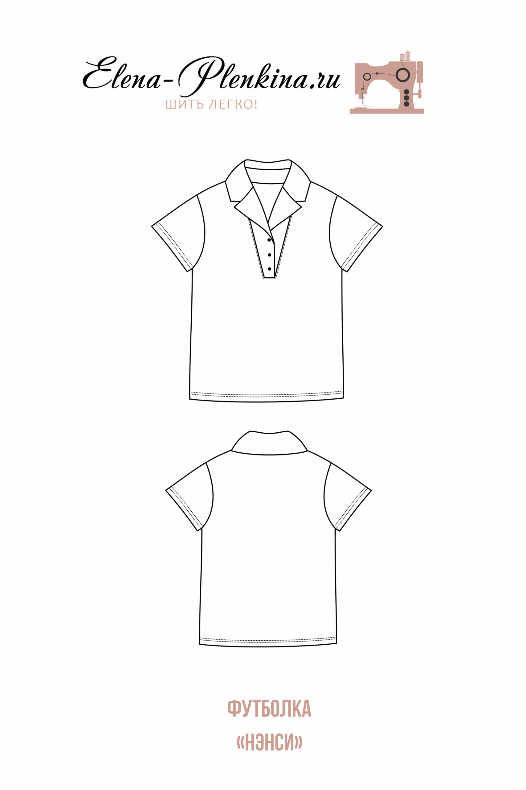 Женская трикотажная футболка среднего объема, прямого силуэта, горловина V-образной формы и оформлена «английским» воротником, переходящим в планку-застежку, которая застегивается на 3 рубашечные кнопки или на 3 пуговицы и 3 пробивные петли, короткий втачной рукав, длина изделия немного выше линии бедер.