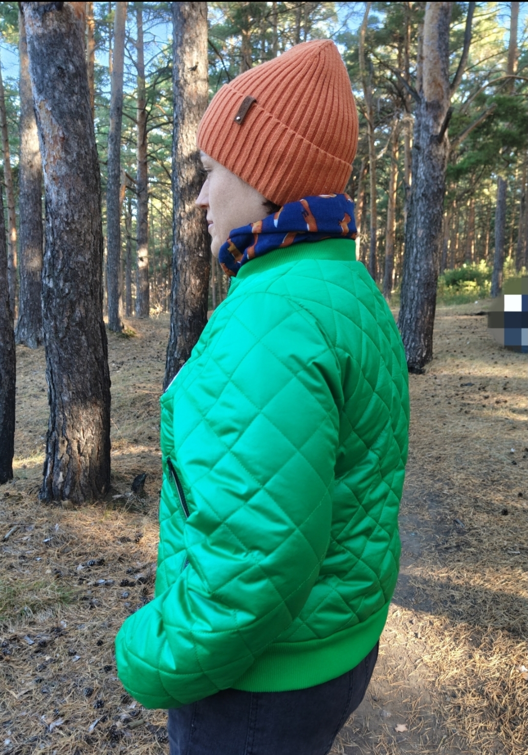 Очень удобный бомбер получился. И универсальный: носить можно и с платьями, и с брюками. В моем случае прям теплый, до -10 смело.
