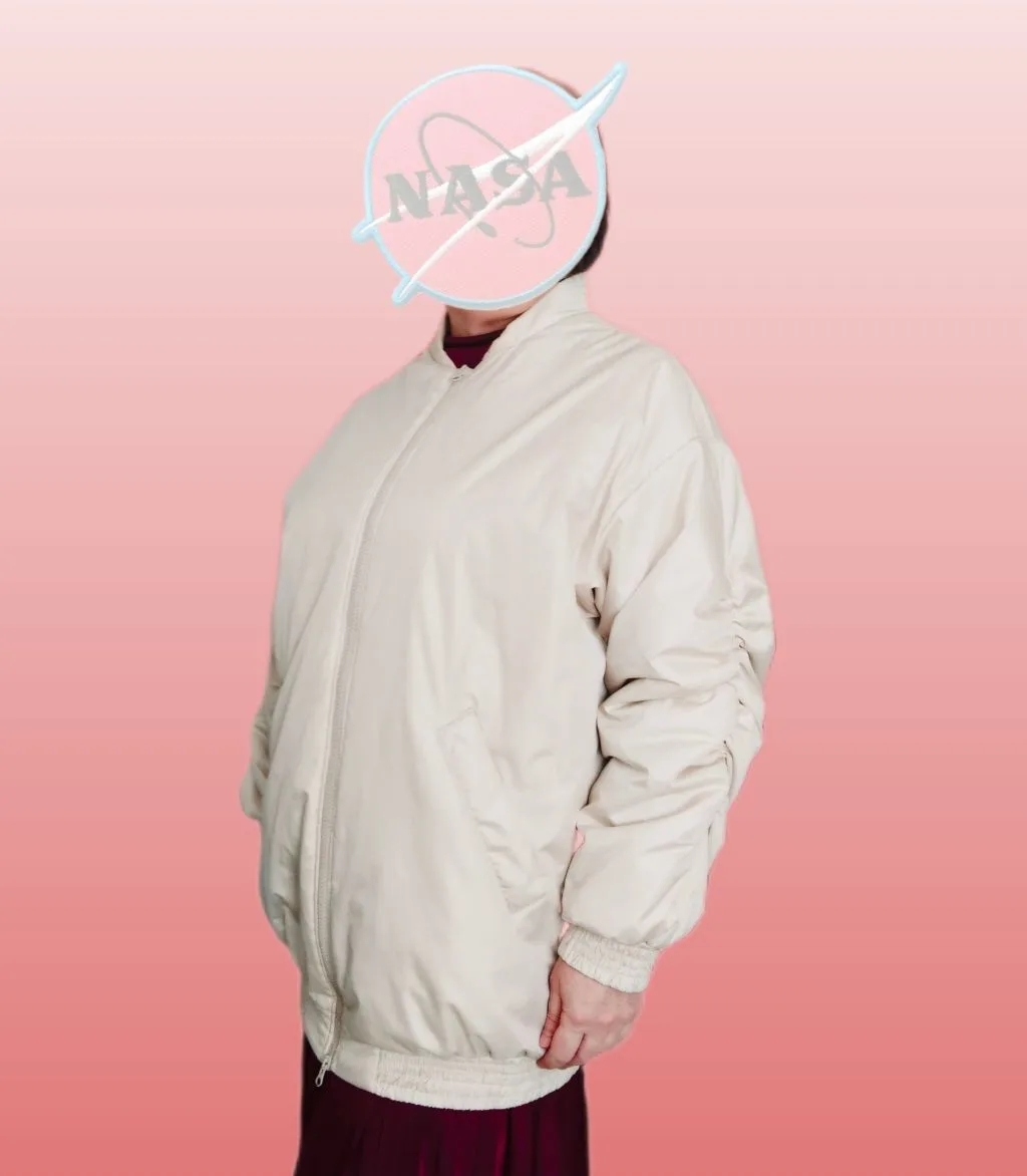 Модель Елена, куртка-бомбер 44 размера рост 170 см, реальный размер (на момент фотосессии) 44 рост 167 см. Параметры тела: ОГ 87 см, ОТ 73 см, ОБ 98 см. Размер выбран по обхвату груди. Курточная ткань шарм, утеплитель слайтекс 100 гр, вискозная подкладка.
