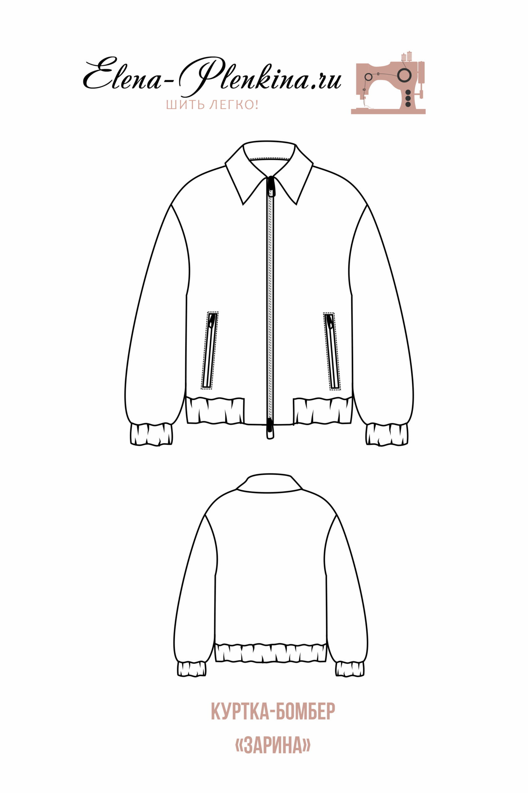 Также вам понадобится 1 длинная разъемная молния, 2 короткие на карманы, эластичная тесьма шириной 5,5 см для обтачки низа и манжета рукавов, дублерин, долевая и косая нитепрошивная клеевая кромка.