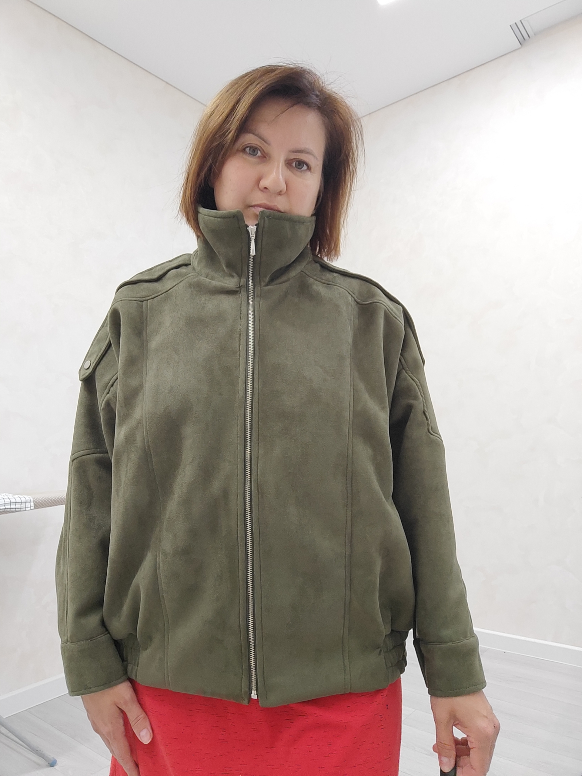Модель Елена, куртка 44 размера рост 170 см, реальный размер (на момент фотосессии) 44 рост 167 см. Параметры тела: ОГ 88 см, ОТ 74 см, ОБ 98 см. Размер выбран по обхвату груди. Сшита из искусственной замши плотностью 420 гр., состав: 95% пэ, 5% эластан, все детали продублированы дублерином плотностью 62 гр. На подкладке вискозная подкладочная ткань.