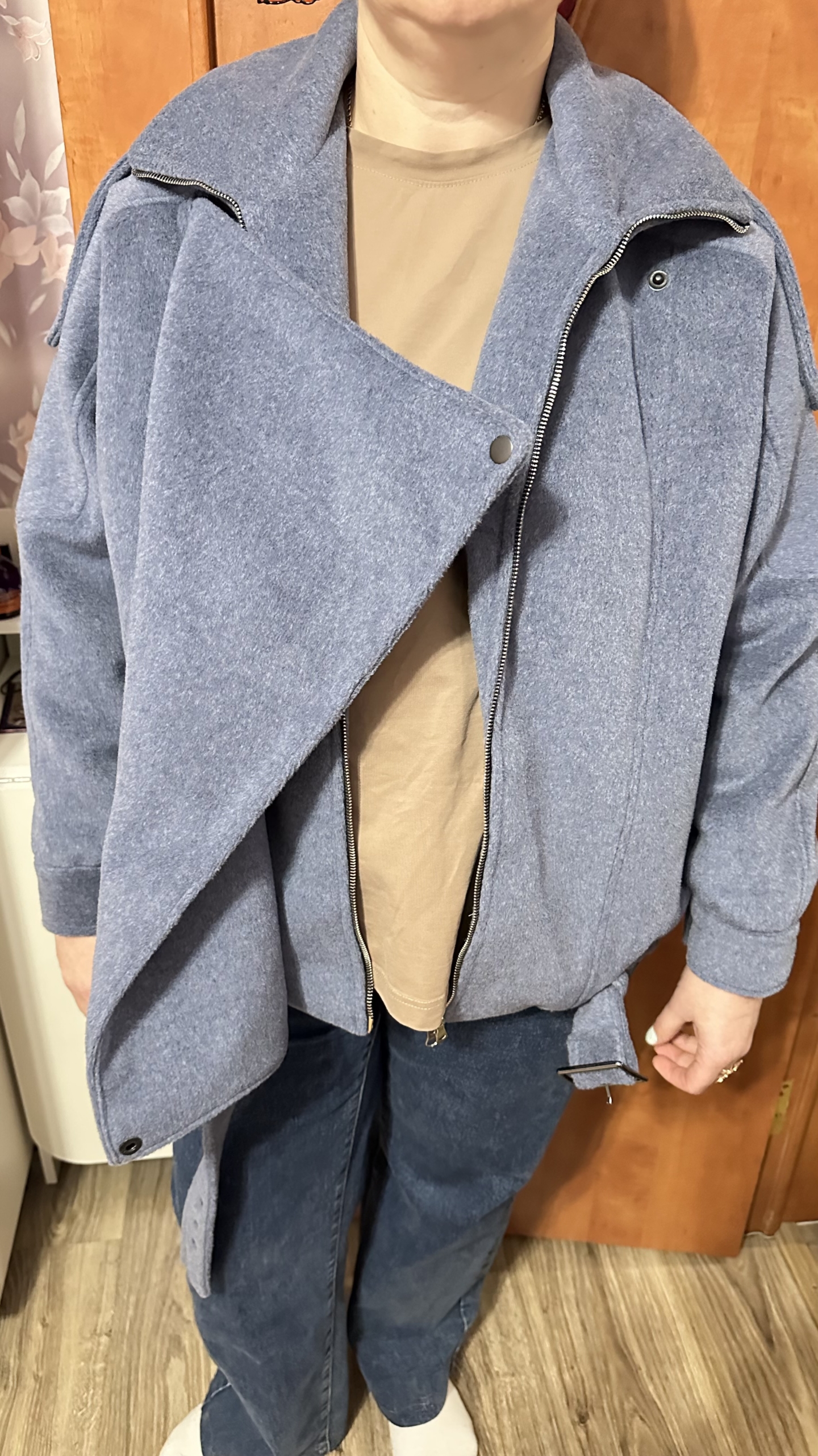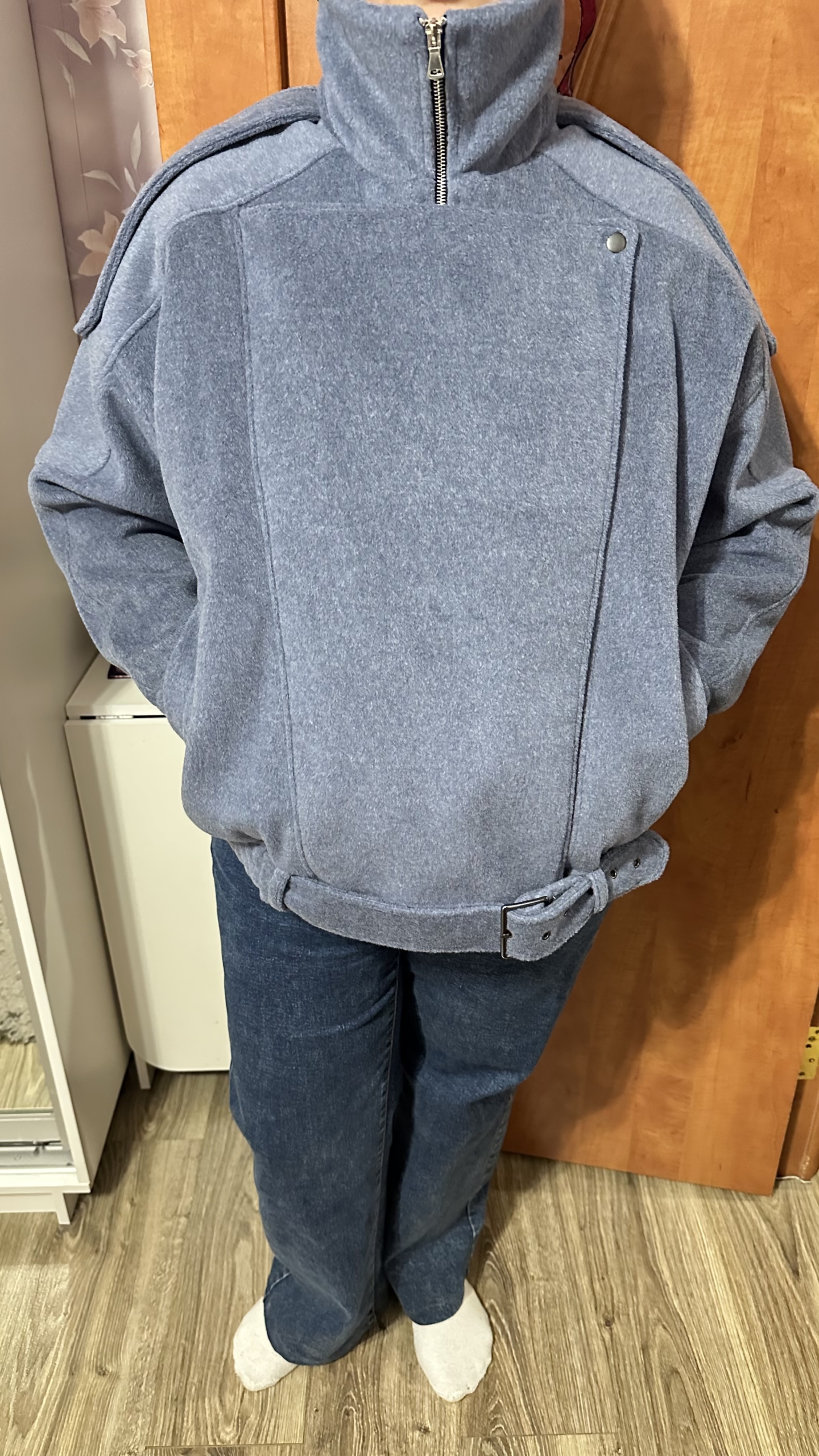 Очень легкая в пошиве, убрала отлëтную деталь и ремень, в остальном без изменений. Осенью успела надеть пару раз, фото на улице нет, к сожалению. Получилась именно такая, как и была нужна