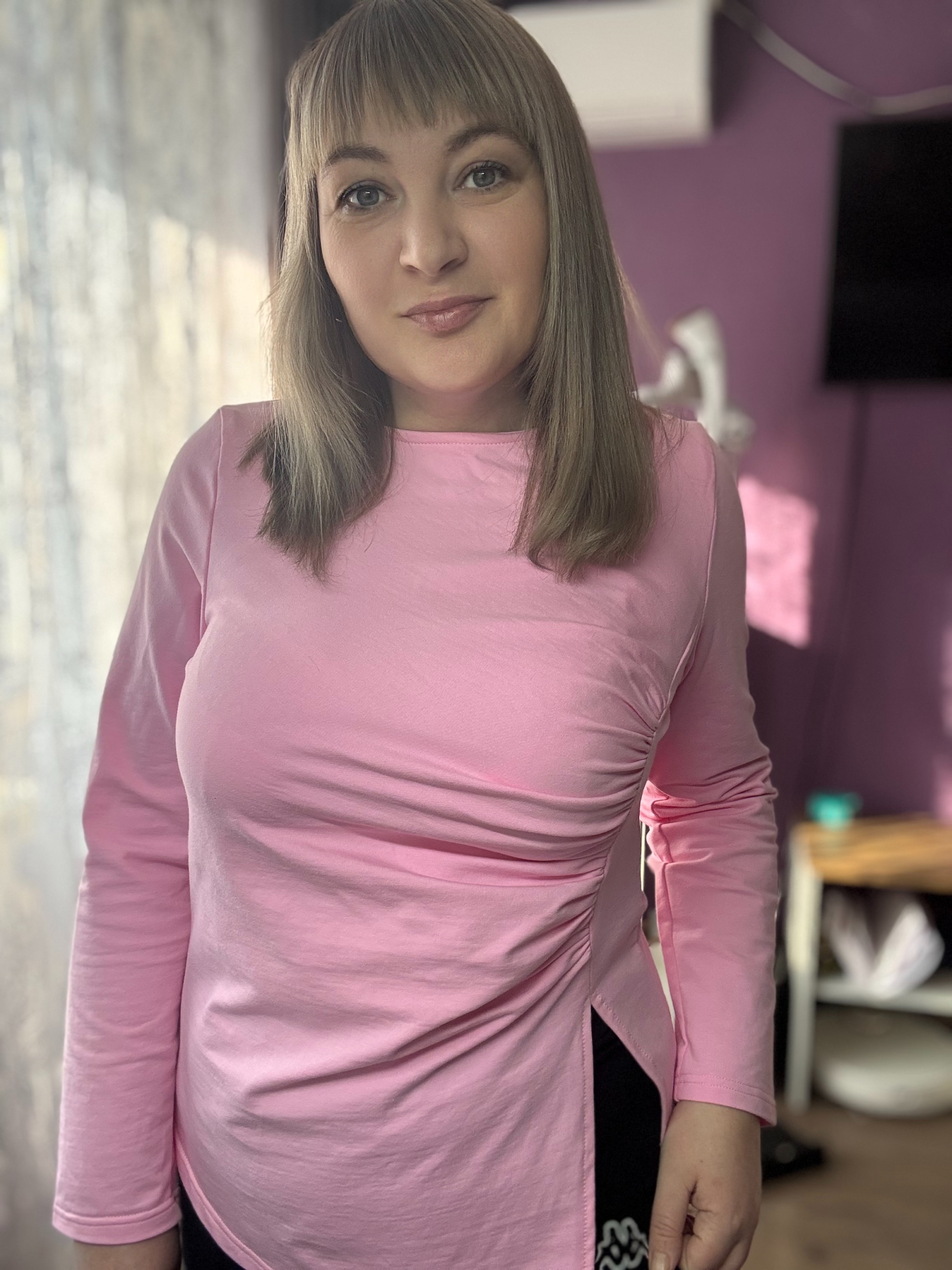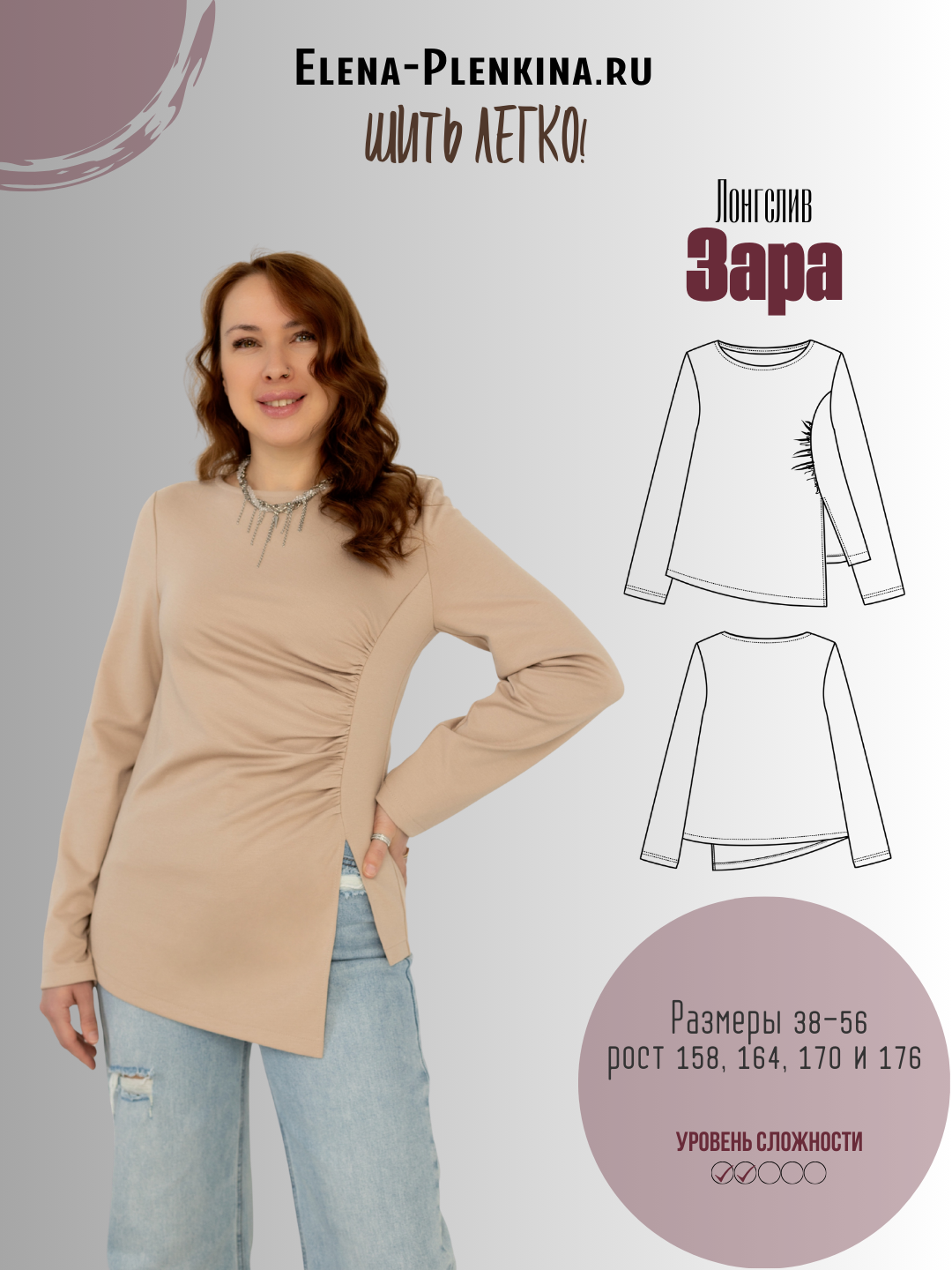 Модель Елена, лонгслив 44 размера рост 170 см, реальный размер (на момент фотосессии) 44 рост 167 см. Параметры тела: ОГ 87 см, ОТ 72 см, ОБ 96 см. Размер выбран по обхвату груди. Сшит из трикотажа джерси плотностью 310 гр./м2, состав: 77% пэ, 18% вискоза, 5% спандекс.
