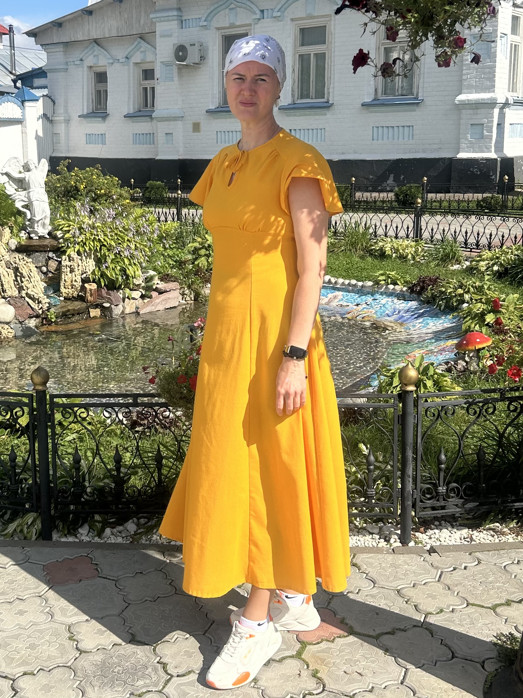 Потрясающее платье, отличная выкройка! Все понятно в инструкции, шилось на одном дыхании. Ткань лен, в выкройке все четко, ни чего не меняла. Очень удачно подошло для паломнической поездки