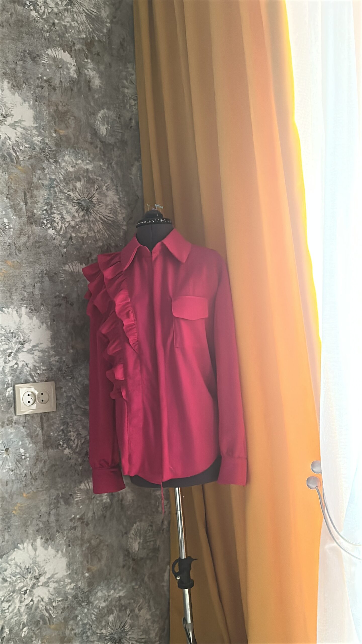 Очень эффектная рубашка, шила из рубашечной легкой ткани. Как можно заметить в основном изделии полоски вдоль, а карман и воланы поперек. Стойка воротника и разрез рукава из белого поплина. В шитье проблем не было, мк супер-понятный. Можно взять за основу и моделировать на свое усмотрение. Спасибо большое ☺️