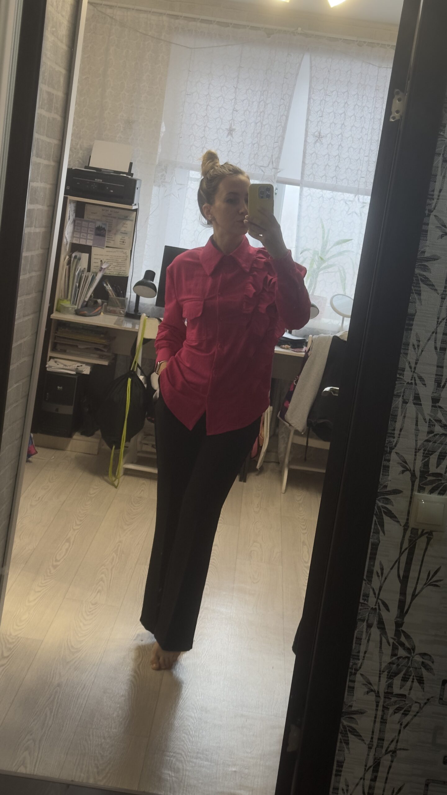Рубашка очень эффектная! Шьется пусть и долго, но легко… Шила из джинсы. Единственное. Брала размер 46(ношу 46) можно легко было брать 44. Показалась большемерит