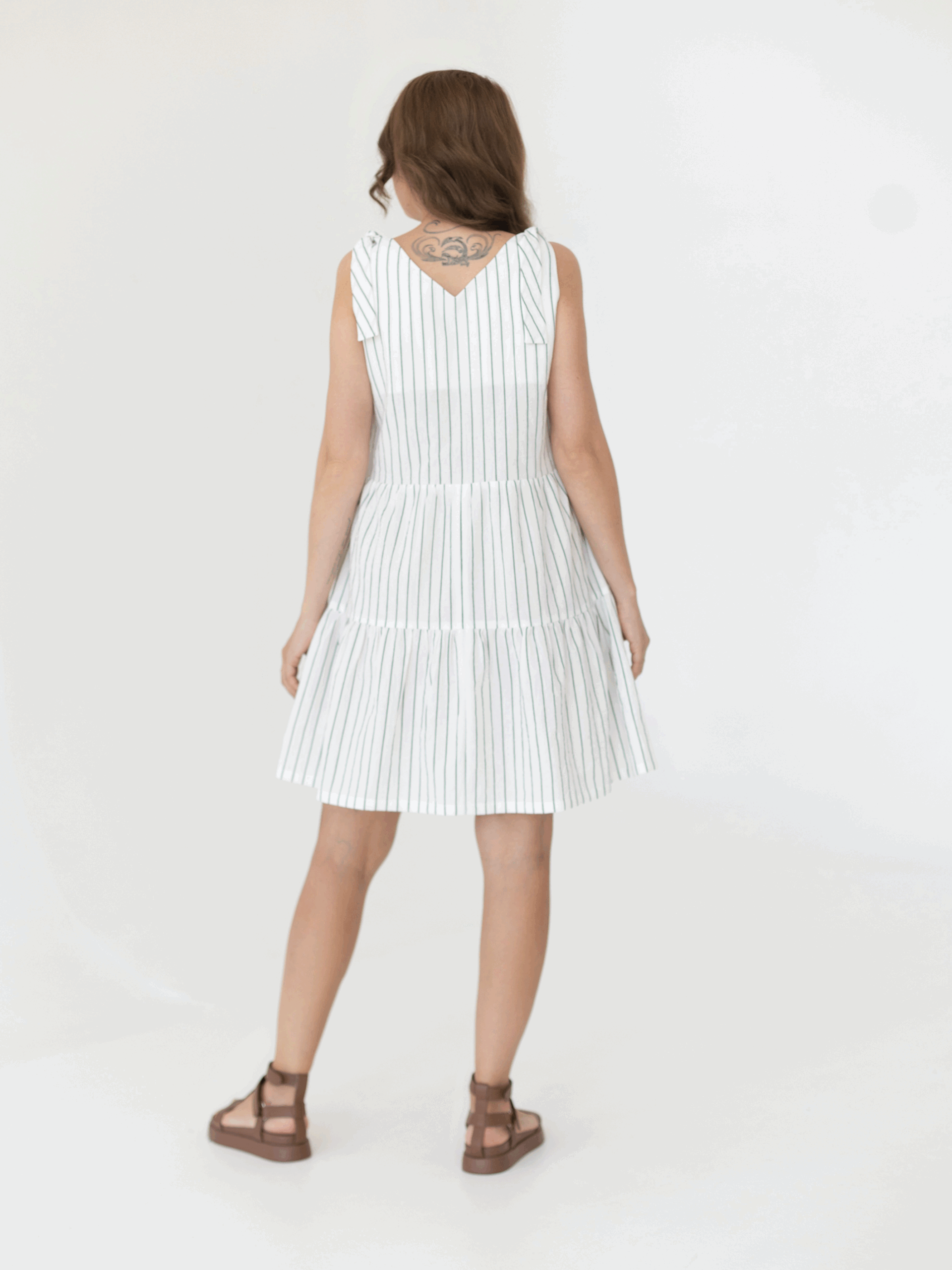 Выкройка отличная, шить легко. Из изменений только застёжку убрала по юбке, оставила только на лифе и добавила длину.