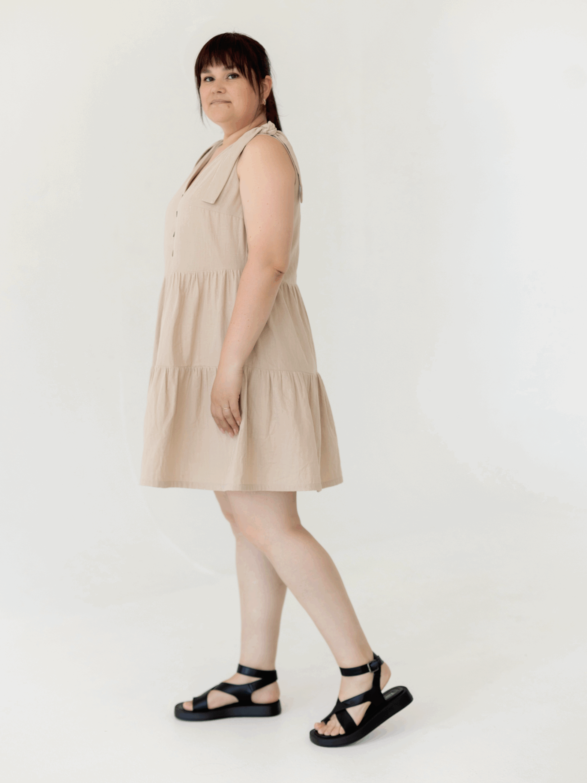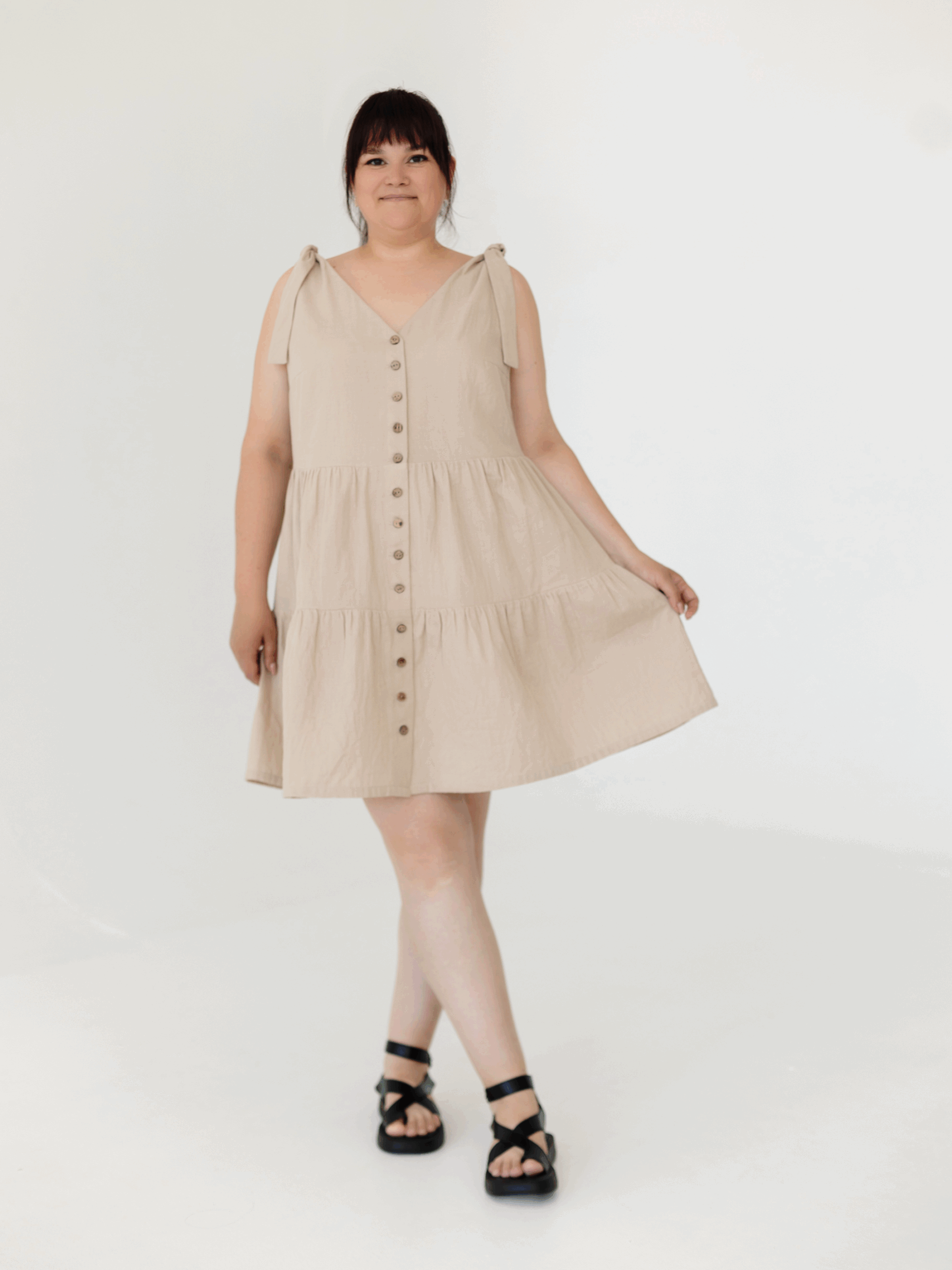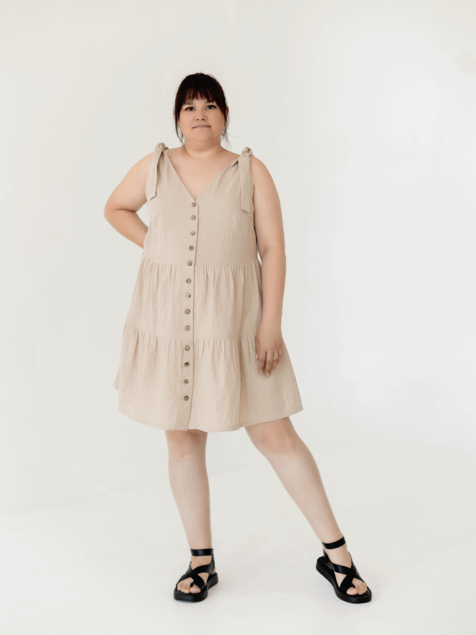 Как только увидела этот сарафан, тут же купила. Прям «моё». Шить легко, ничего не меняла, только количество пуговиц. На объем груди 100 взяла 48 размер, не прогадала. Рекомендую к пошиву
