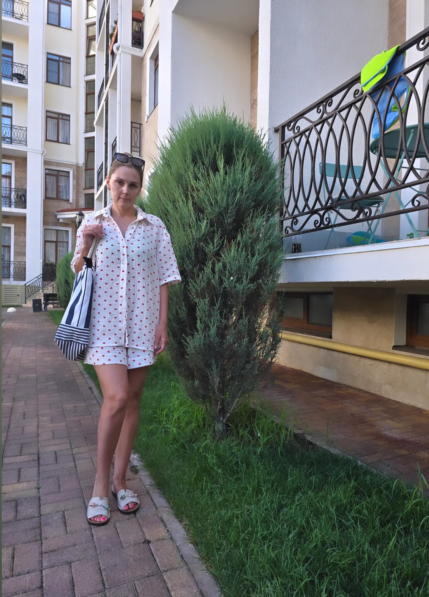 Посадка шорт идеальная для меня. Брала свой размер. Шила из льна. Комплект супер для юга. Спасибо вам.
