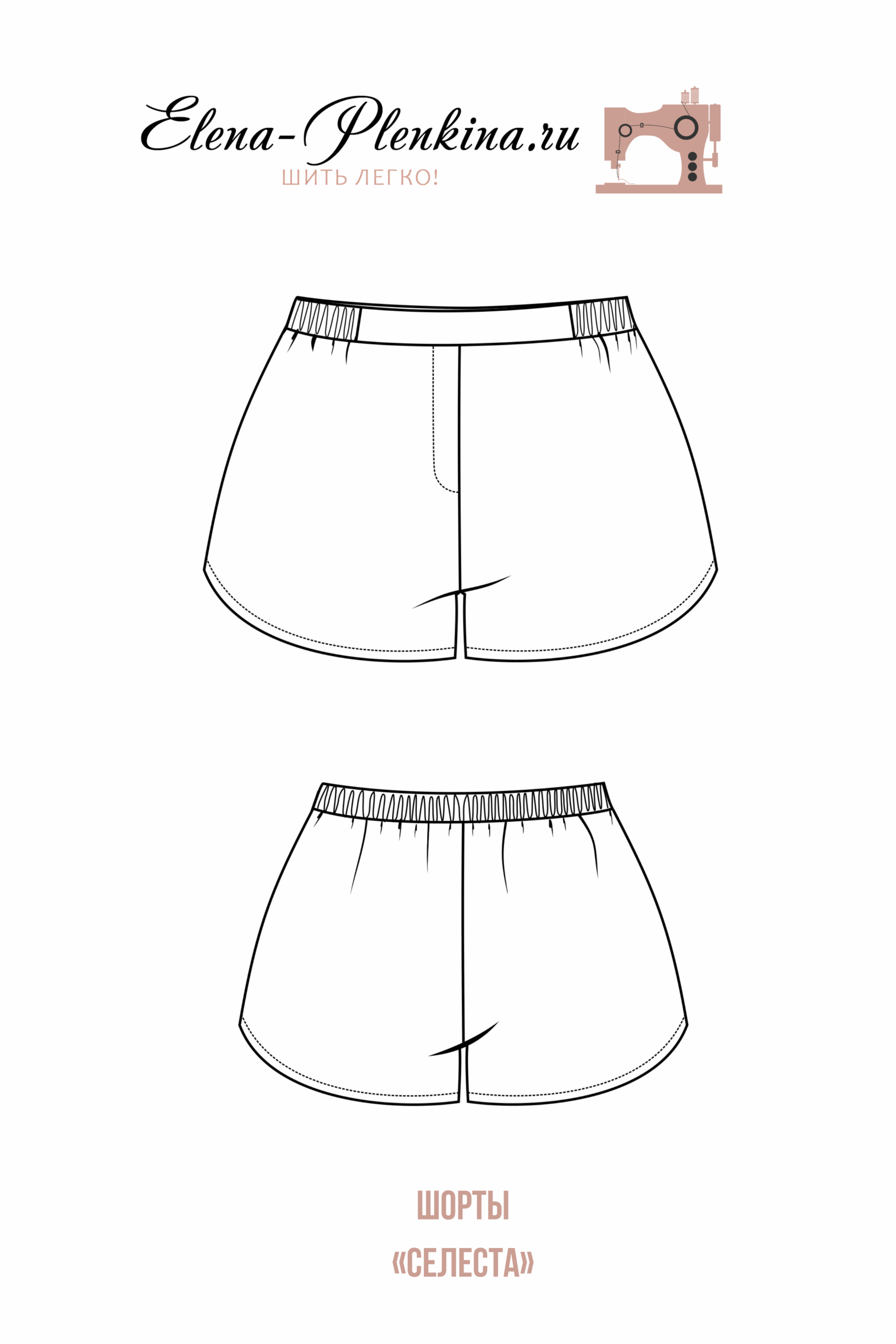 Женские шорты среднего объема, высокая посадка, ложный гульфик, верх шорт оформлен двойным притачным поясом из основной ткани, внутри боковой и задней части пояса продета эластичная лента (резинка), ассиметричная линия низа.