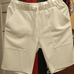 Для пояса – рибана с лайкрой – 15 см при ширине полотна 180 см во всех размерах. Кашкорсе при ширине полотна 120 см: в размерах 44-62 – 15 см, размер 62 – 30 см (пояс будет со швами, можно сделать швы на поясе в районе боковых швов шорт).