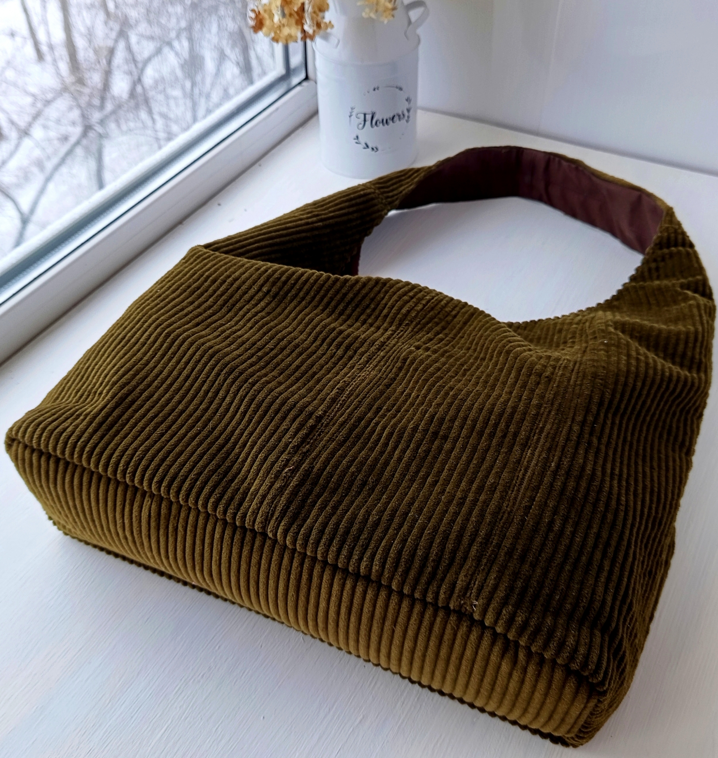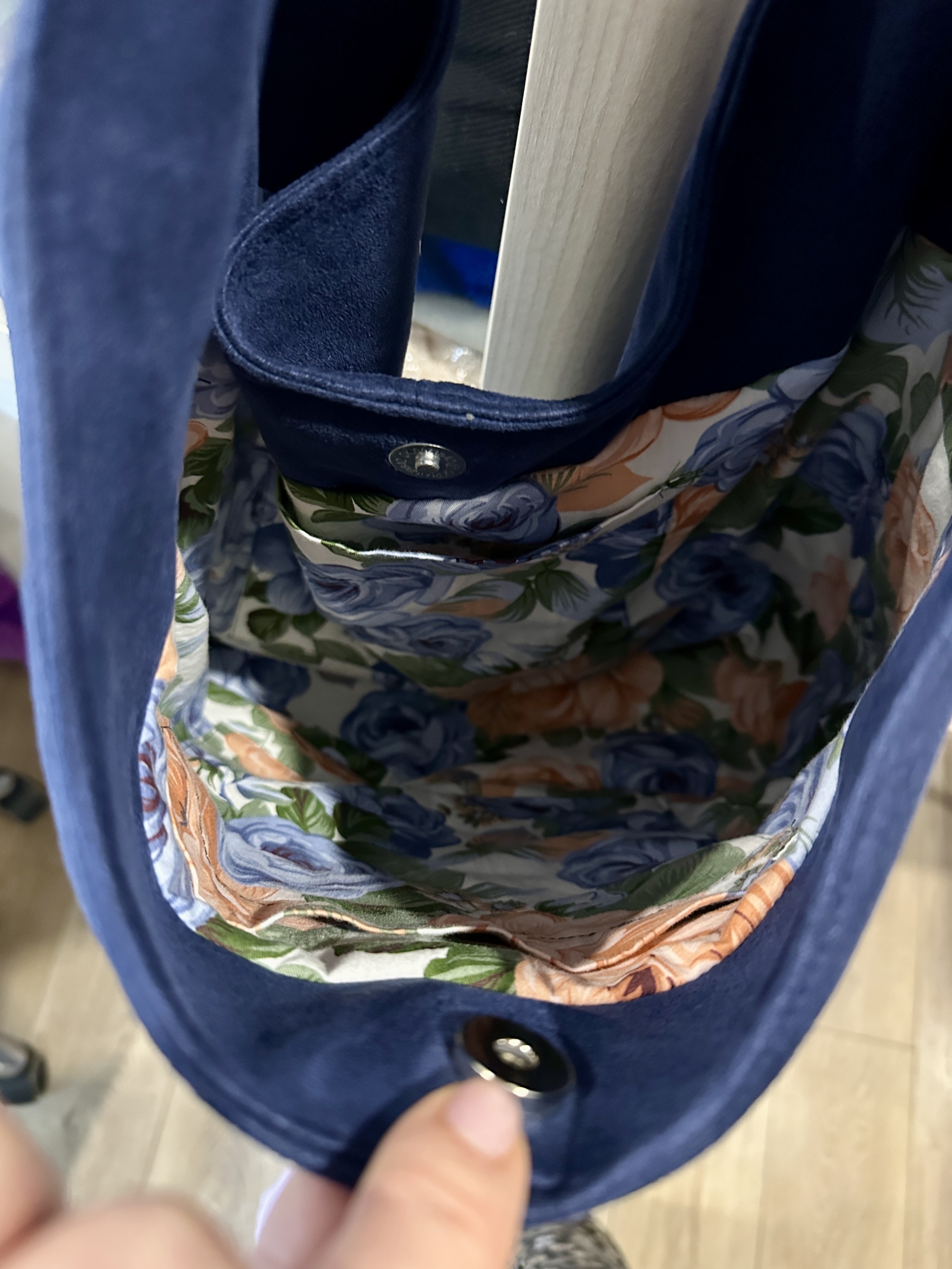 Сумка получилась классная! Шила из микровельвета, добавила ещё карманов внутри. Спасибо за выкройку и мастер класс.