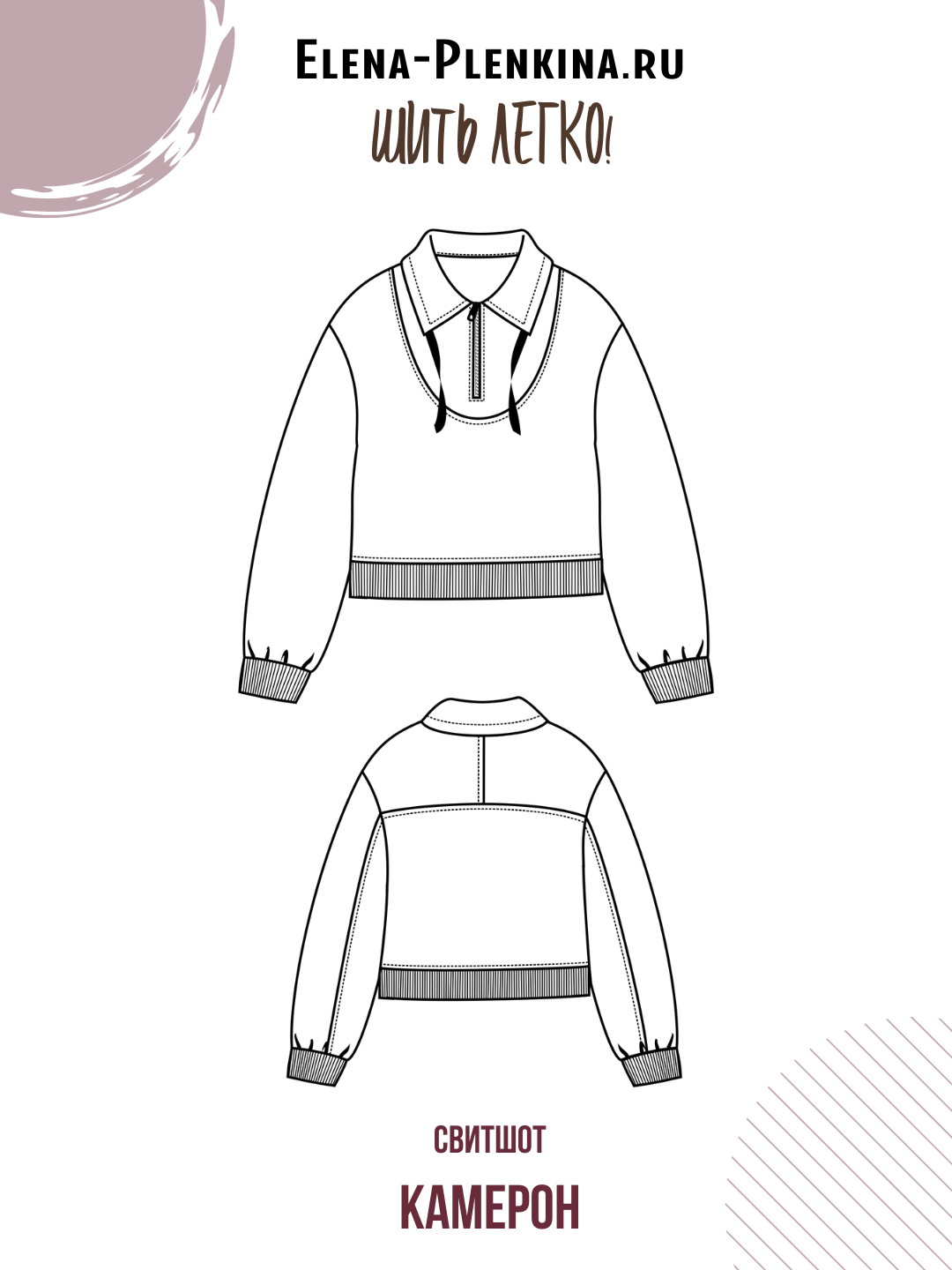 Свитшот пошила из футера 3нитки петля. Застёжку-молнию продлила на воротник, чтобы можно было носить в застёгнутом и расстегнутом виде и увеличила длину изделия. Выкройку брала в размер.