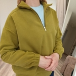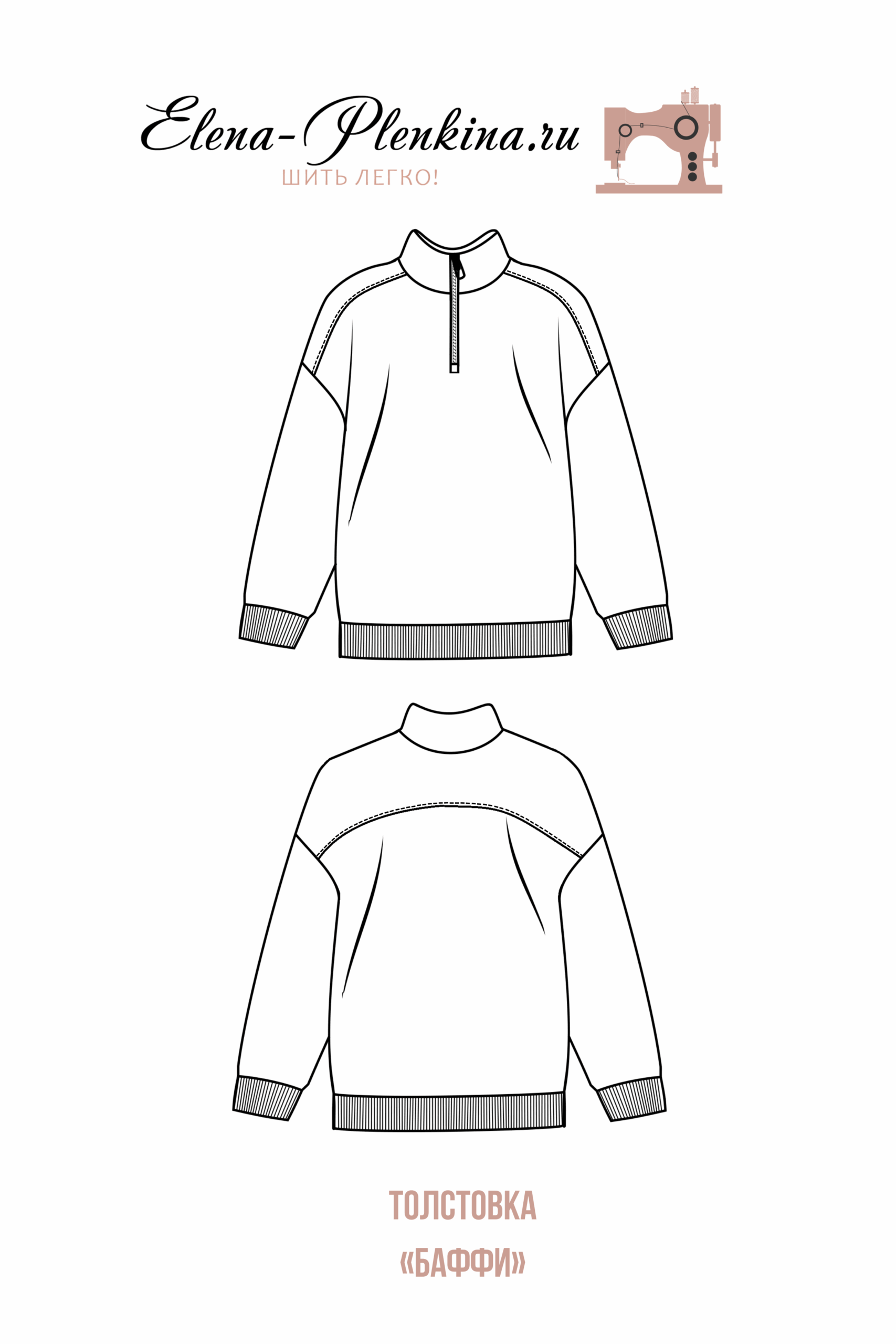 Рекомендуемые материалы – плотные трикотажные полотна, такие как футер трехнитка с начесом, микроначес, футер барашек, футер трехнитка, флис. На манжеты рукавов и низа – кашкорсе или рибана с лайкрой. Также вам понадобится не разъемная молния длиной 25 см, долевая клеевая нитепрошивная кромка для укрепления срезов под притачивание молнии, дублерин для укрепления обтачек горловины.