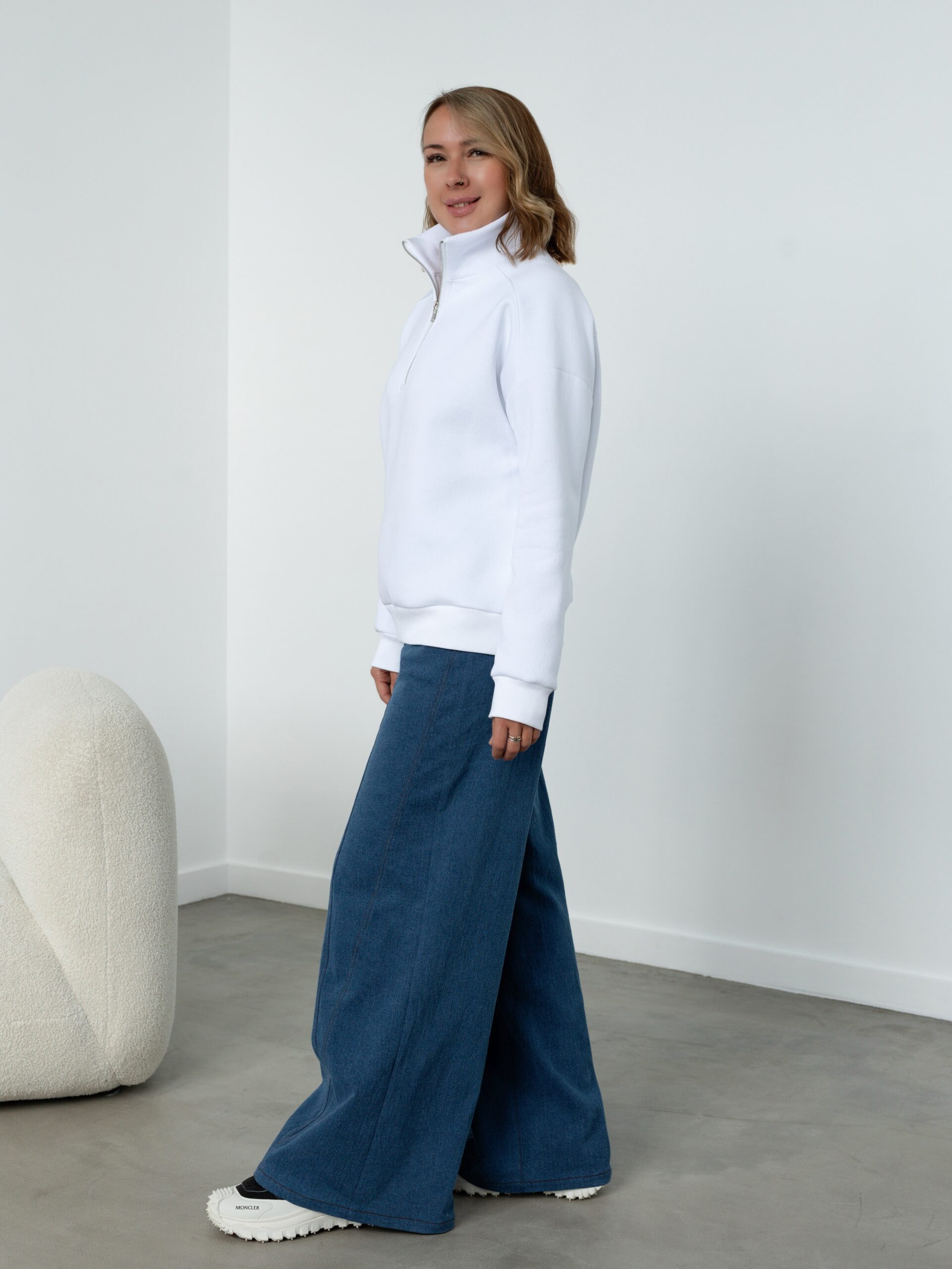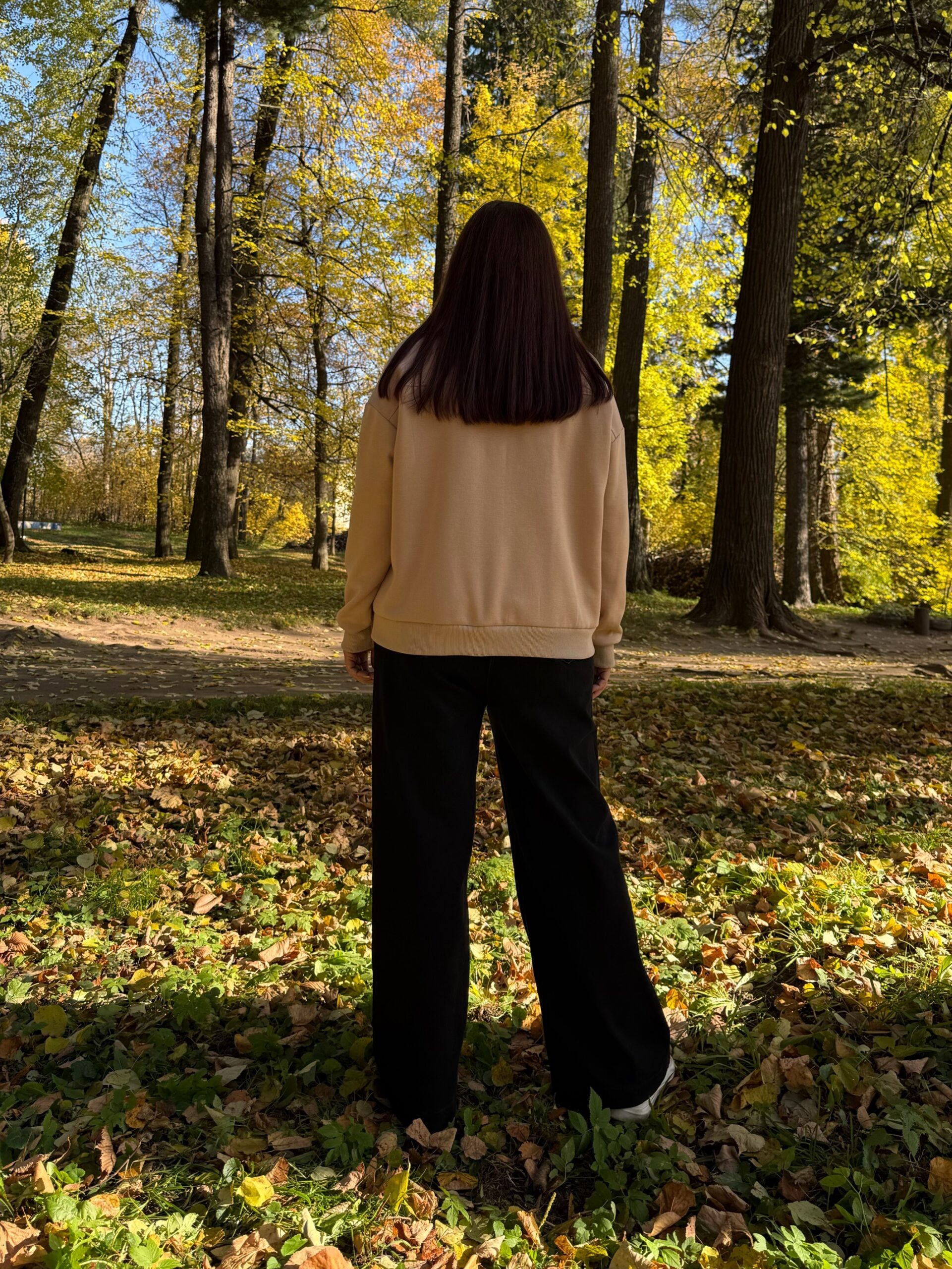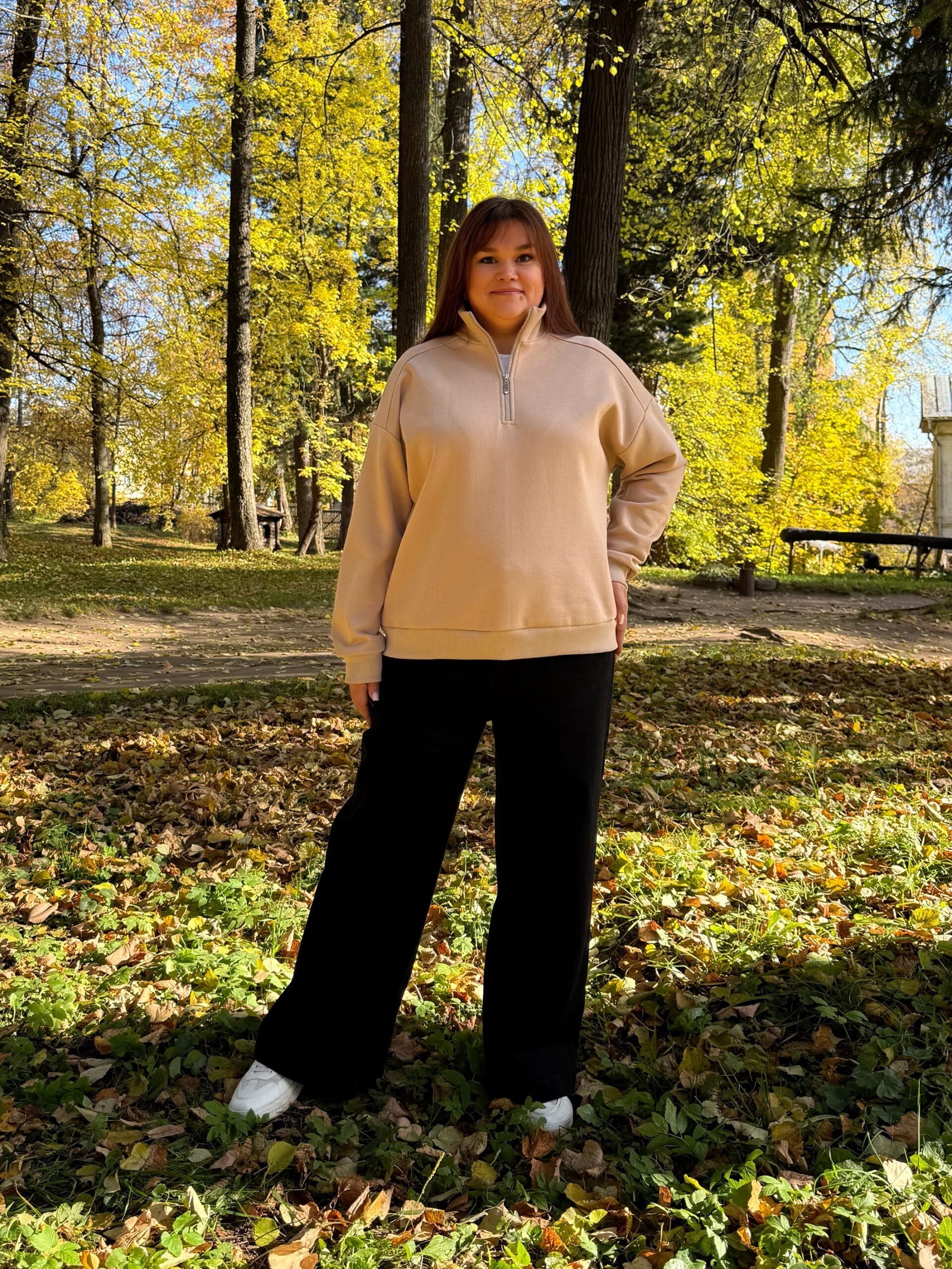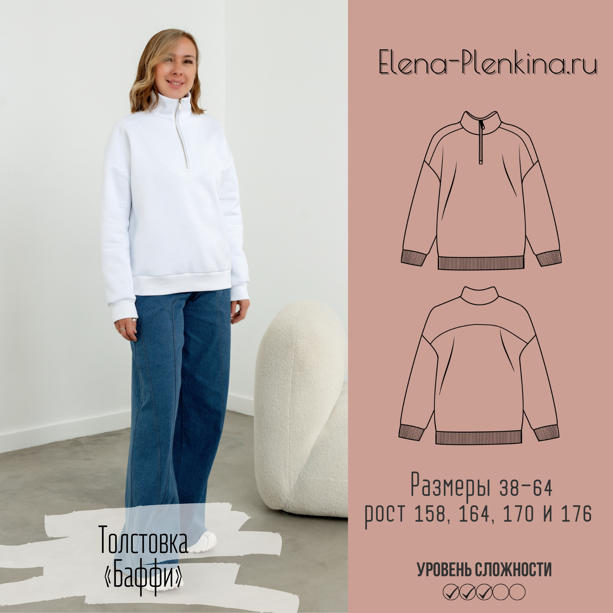 Модель Елена, толстовка 44 размера рост 170 см, реальный размер (на момент фотосессии) 44 рост 167 см. Параметры тела: ОГ 88 см, ОТ 74 см, ОБ 98 см. Размер выбран по обхвату груди. Сшита из футера трехнитки с начесом плотностью 330 гр/м2, состав: 65% хлопок, 35% пэ. Также на Елене джинсы по выкройке “Имоджен”.