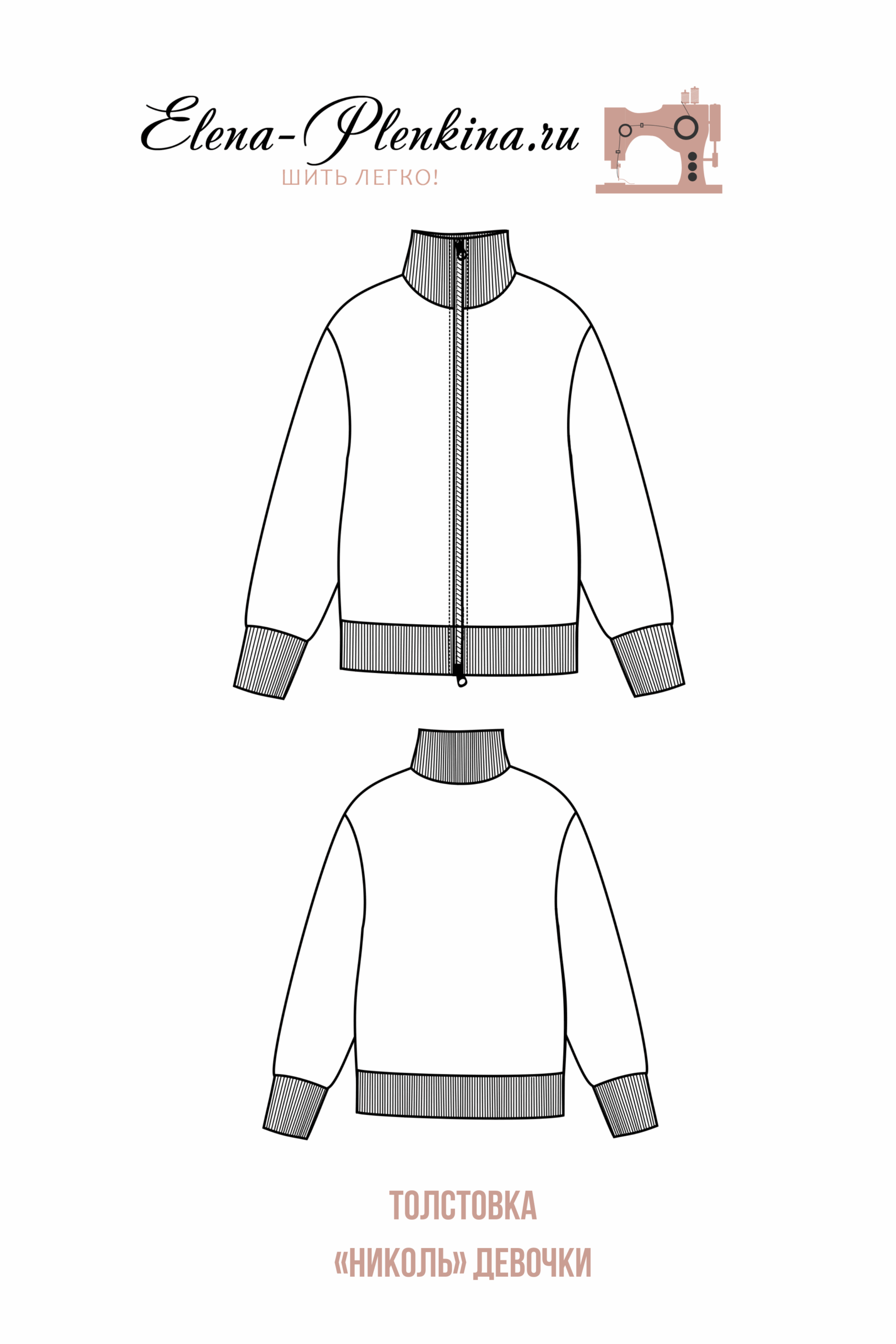 Рекомендуемые материалы – трикотажный жаккард, футер 2нитка, футер 3нитка петля, начес, микроначес или стриженый начес, джерси, вязаный трикотаж, флис и прочие виды трикотажа. На воротник и манжеты рукавов и низа толстовки — кашкорсе или рибана с лайкрой. Также вам понадобится длинная разъемная молния, долевая клеевая нитепрошивная кромка для укрепления срезов под притачивание молнии, дублерин для укрепления обтачки горловины спинки и подборта.