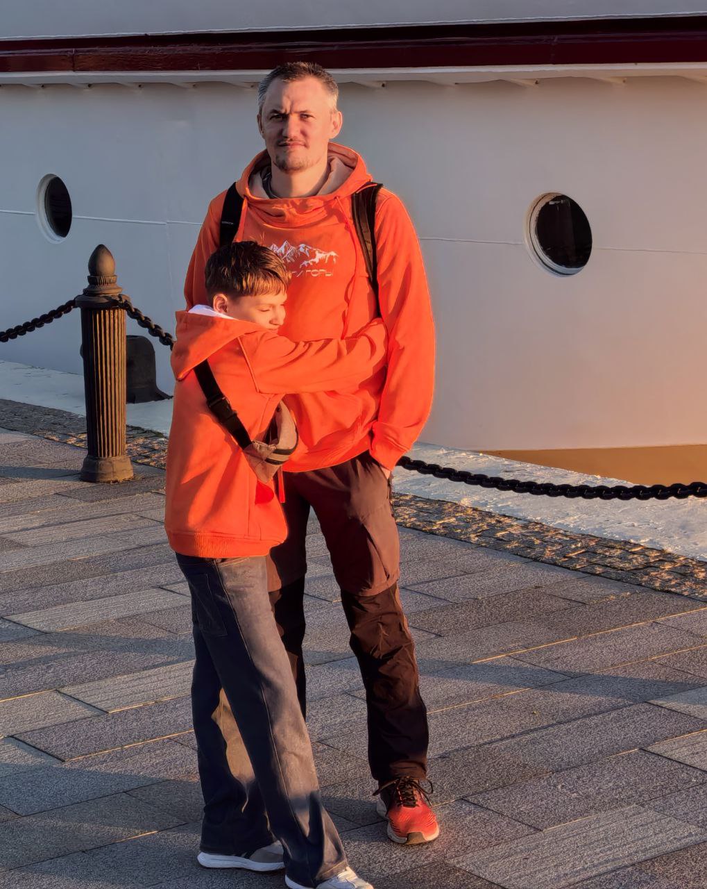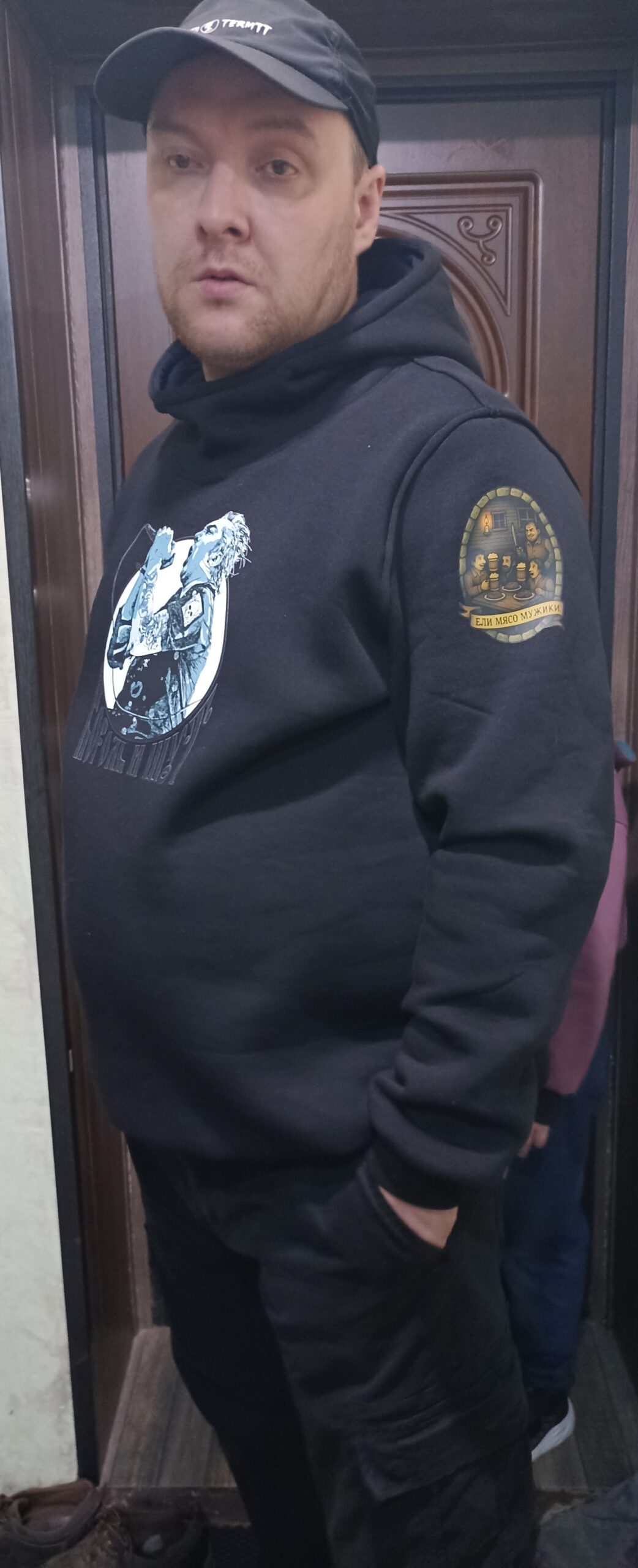 Модель Илья, толстовка из футера трехнитки петля, размер 46 рост 182, реальный размер 46 рост 184 см (ОГ 93 см, ОТ 84 см, ОБ 99 см).