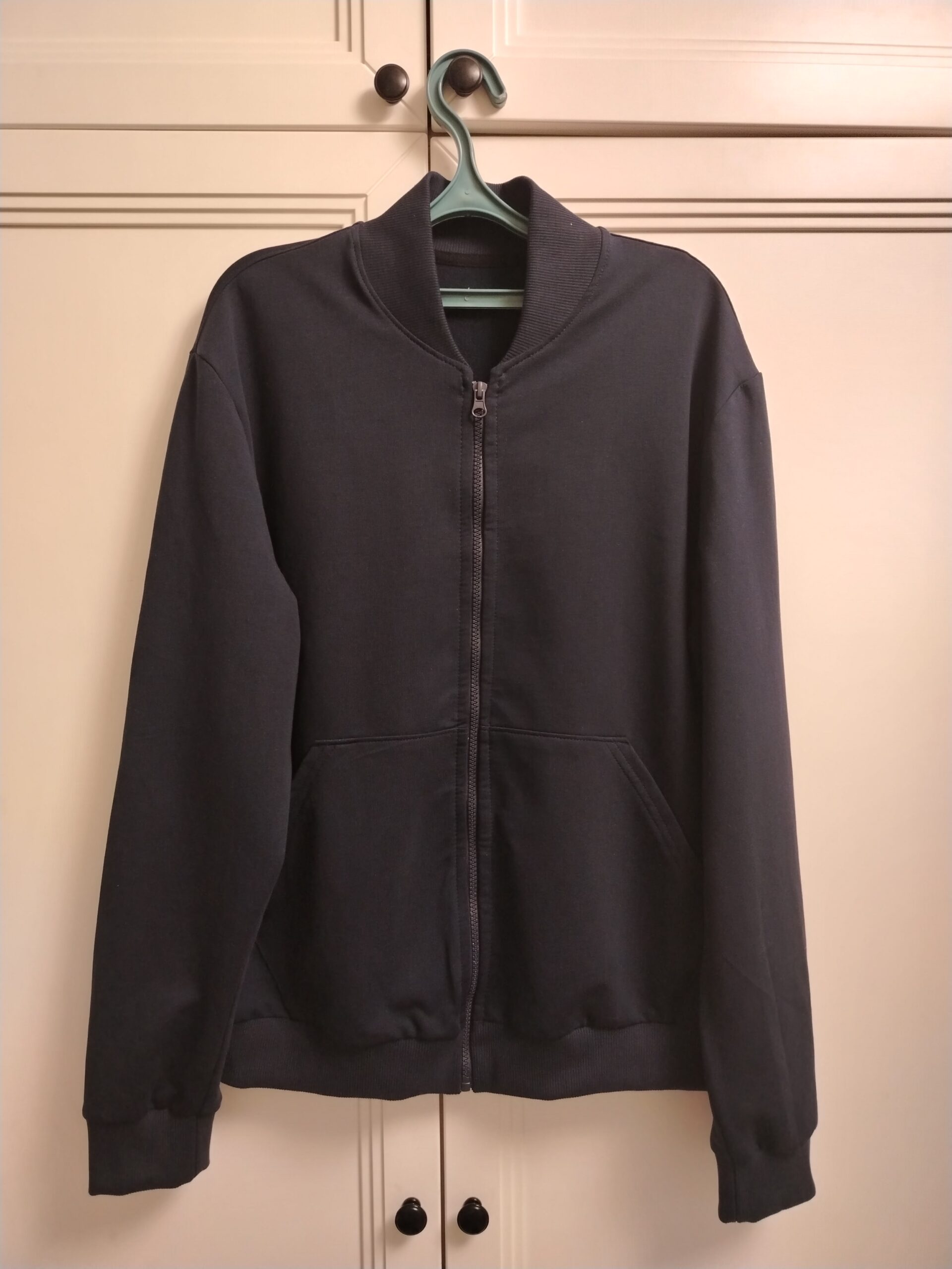 По этой выкройке сшила одному и тому же человеку 2 толстовки, одна из них бомбер. Бембер пришлось немного скорректировать на выступающий живот и заменила карманы на кенгуру. В плечах сели шикарно обе модели