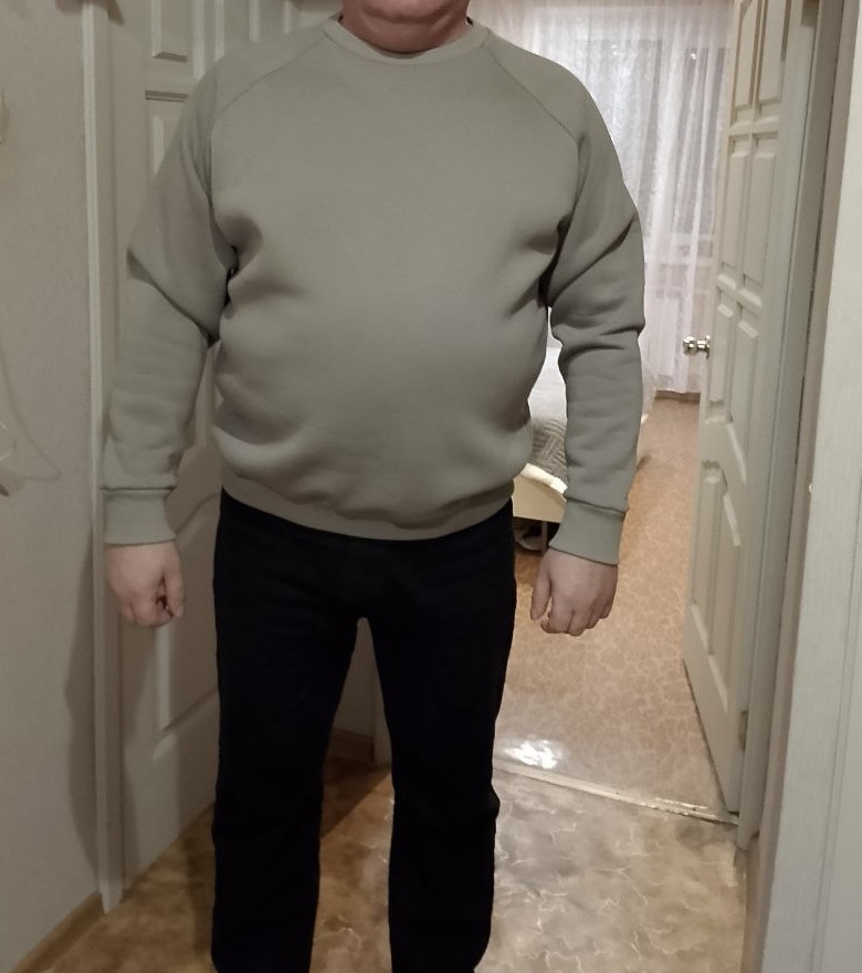 Модель Илья, толстовка из флиса плотностью 290 гр., размер 46 рост 182, реальный размер по обхвату груди 46 рост 184 см (ОГ 93 см, ОТ 82 см, ОБ 98 см).