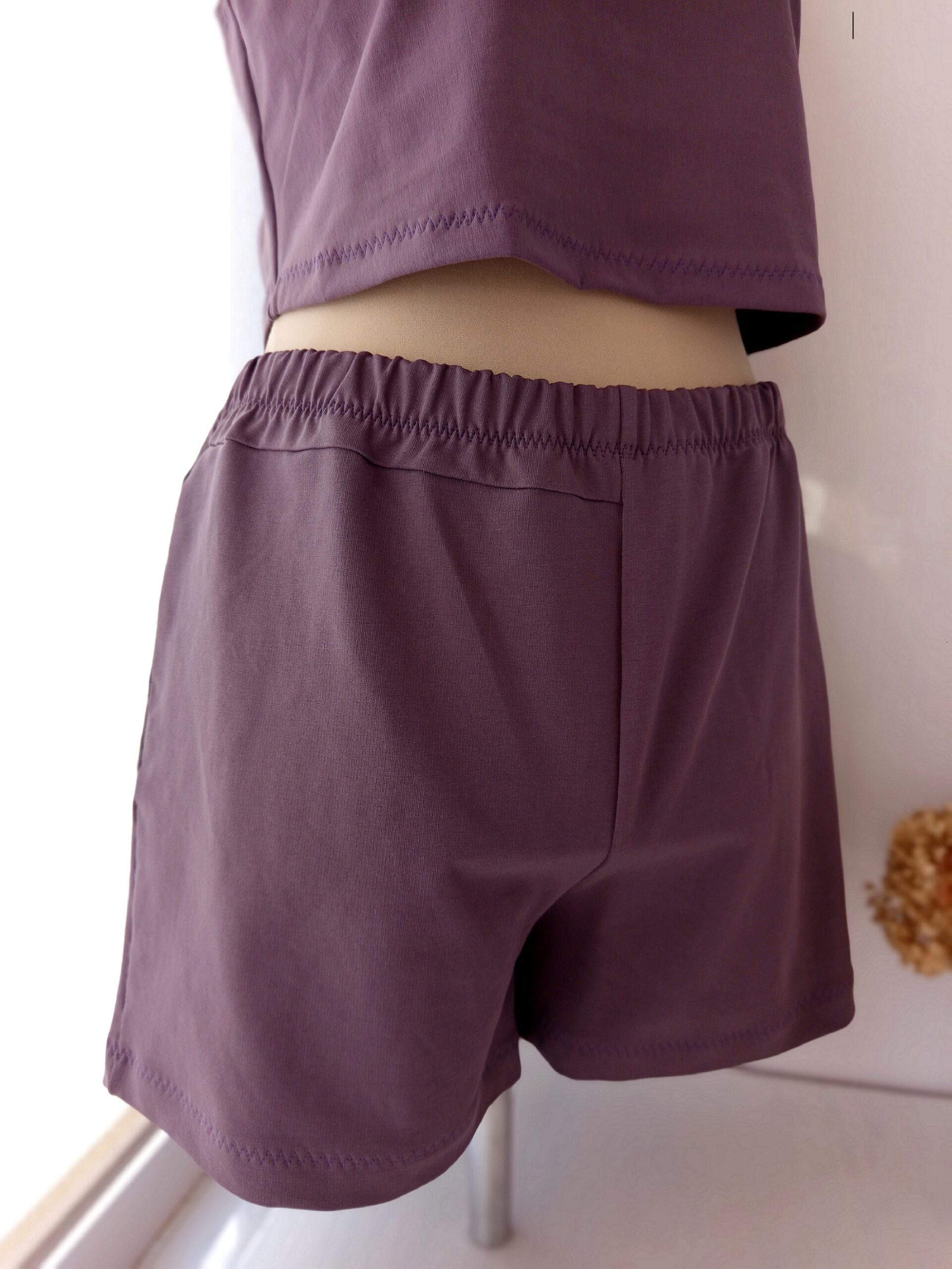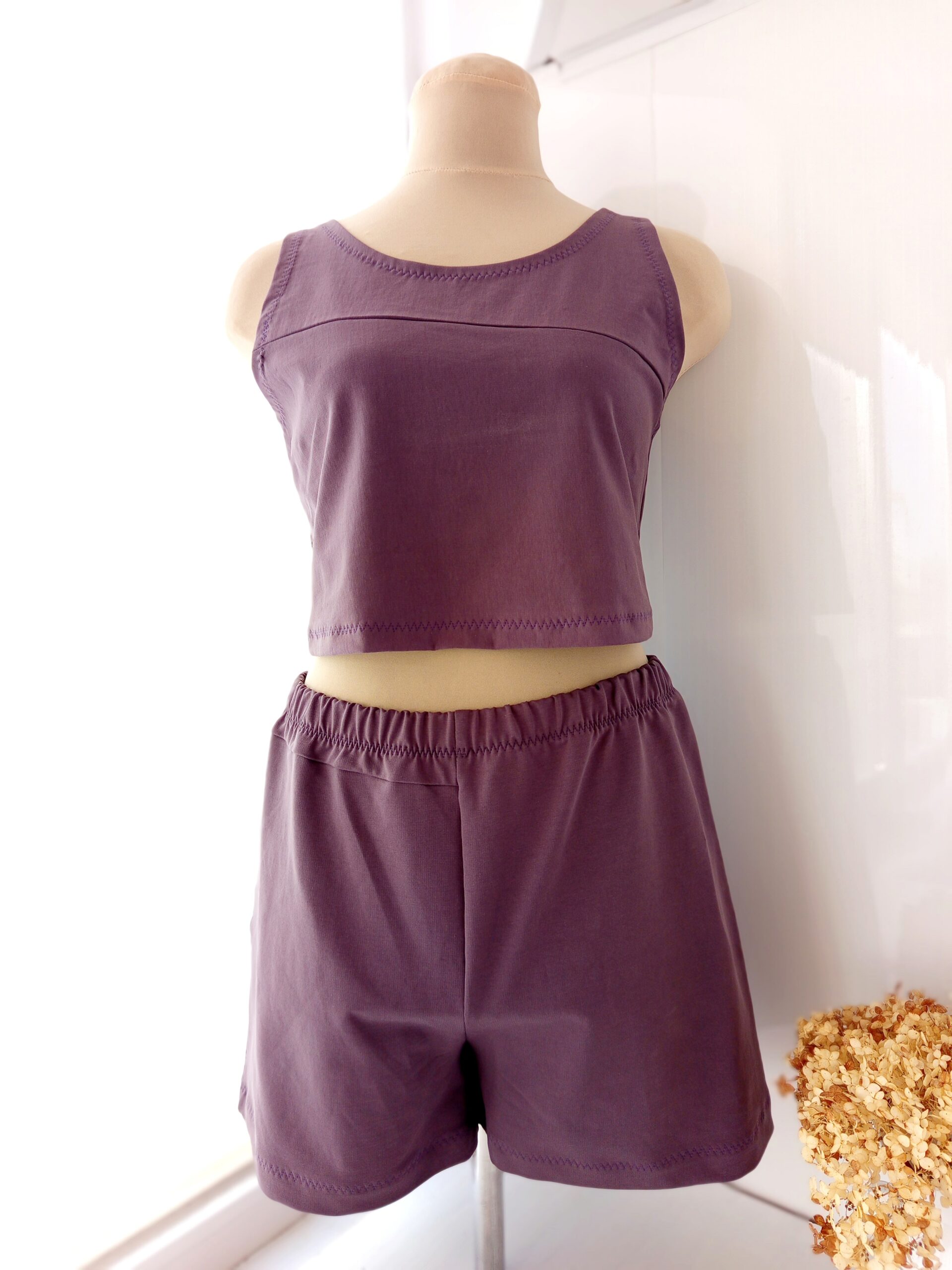 Топ и шорты из мягкого трикотажа отлично подойдут в качестве домашнего комплекта или пижамы.