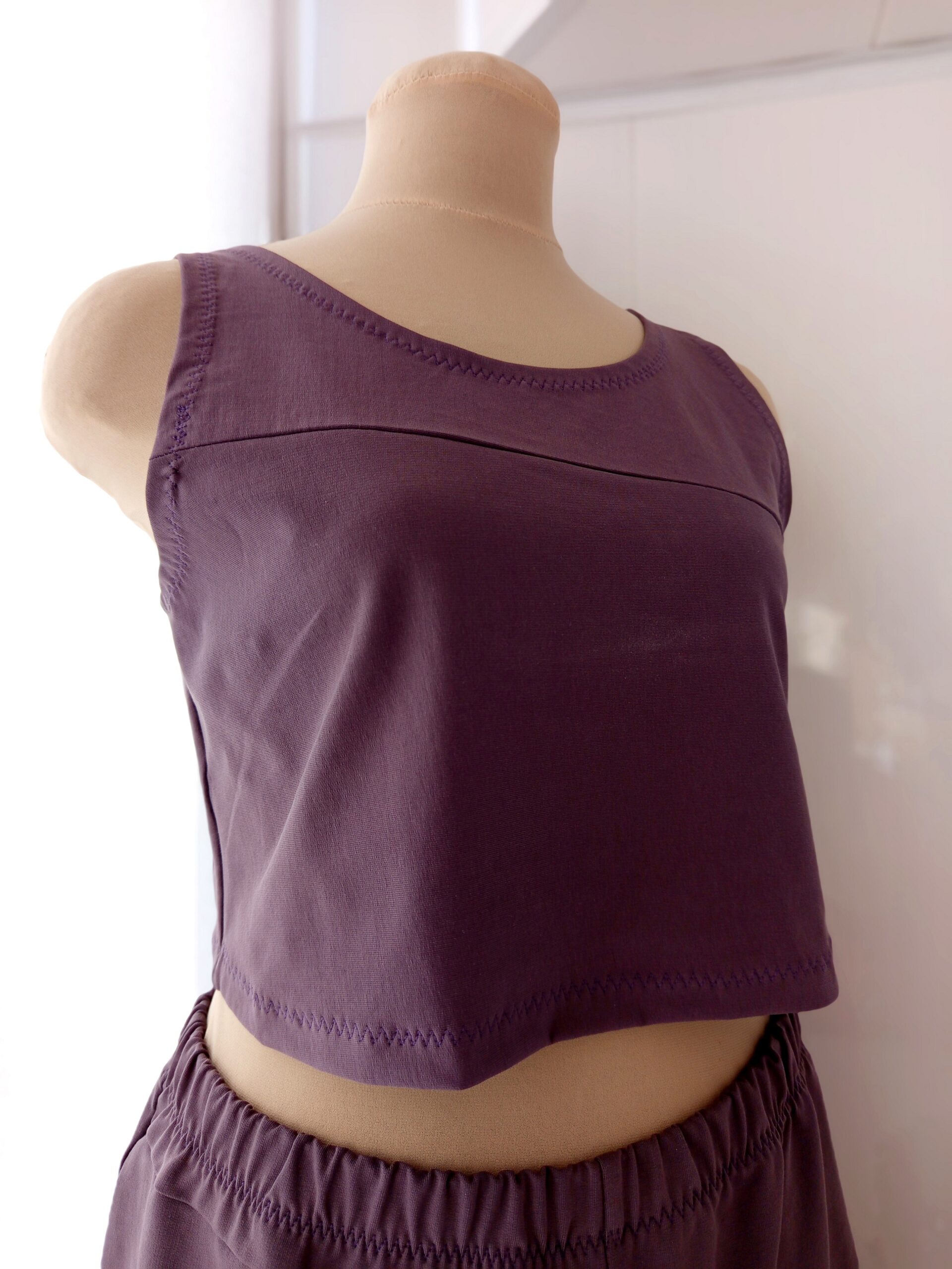 Сшила топ по вашей выкройке. Буду носить летом с юбкой) Распошивальной машины нет, поэтому обработку делала двойной иглой. Сестра уже заказала себе такой же топ, буду шить)