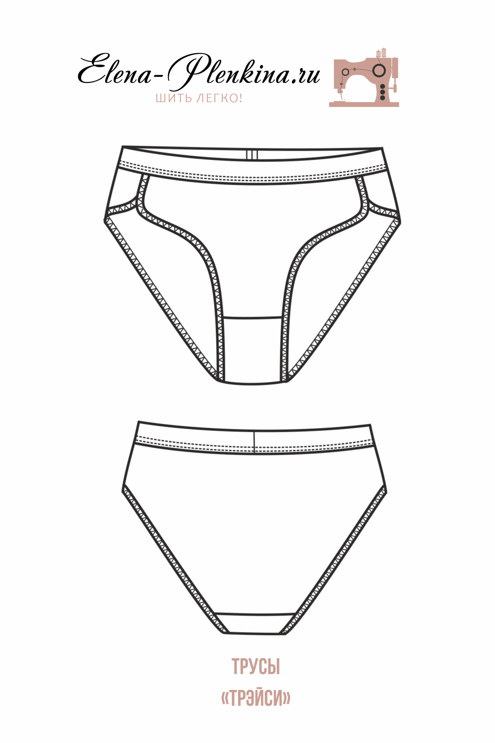 Женские трусы со средней посадкой, верхний срез под обработку резинкой шириной 2,5 см, срезы для ног под окантовку трикотажной окантовочной резинкой.