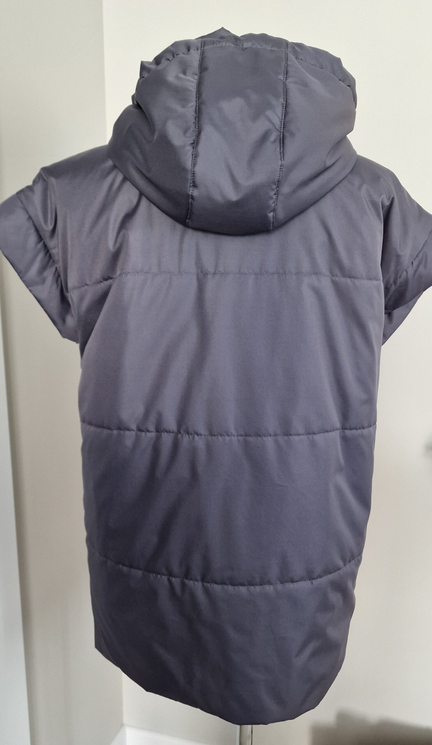 Выкройка отличная. Шила без капюшона. На пояс ткани не хватило, поэтому сделала кулиску на талии. Жилетка получилась очень комфортная!