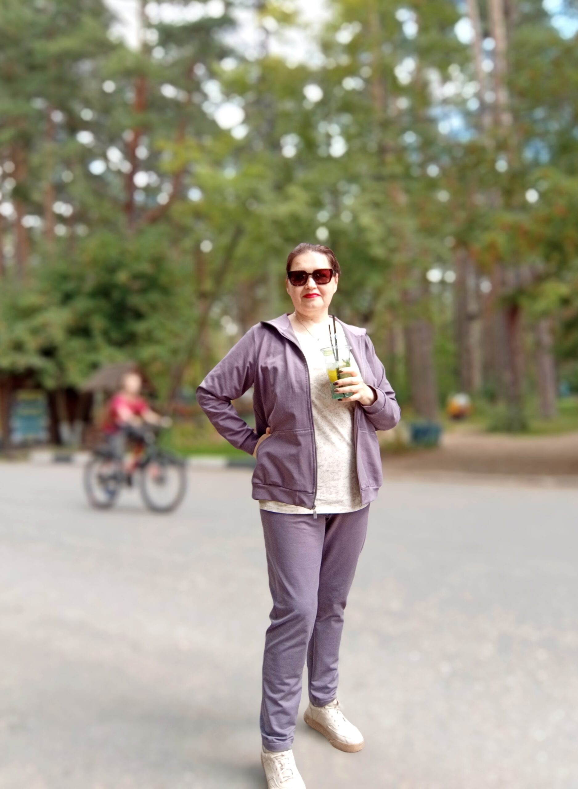 Сшила за раз и леггинсы и велосипедки , длину убавляла, поскольку мой рост 162 . Размер брала свой 50 , не посмотрела на таблицу с размерами .. В итоге свободно , смотрится как брюки . Футер двунитка . Толстовка по выкройке Эрика.