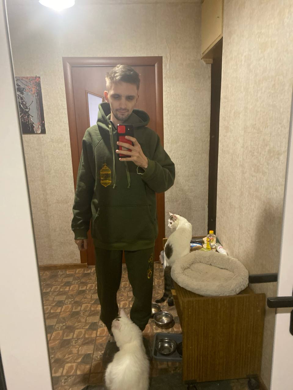 Модель Илья, худи из пике двухнитки, размер 48 рост 182, реальный размер по обхвату груди 48 рост 184 см (ОГ 95 см, ОТ 84 см, ОБ 100 см).