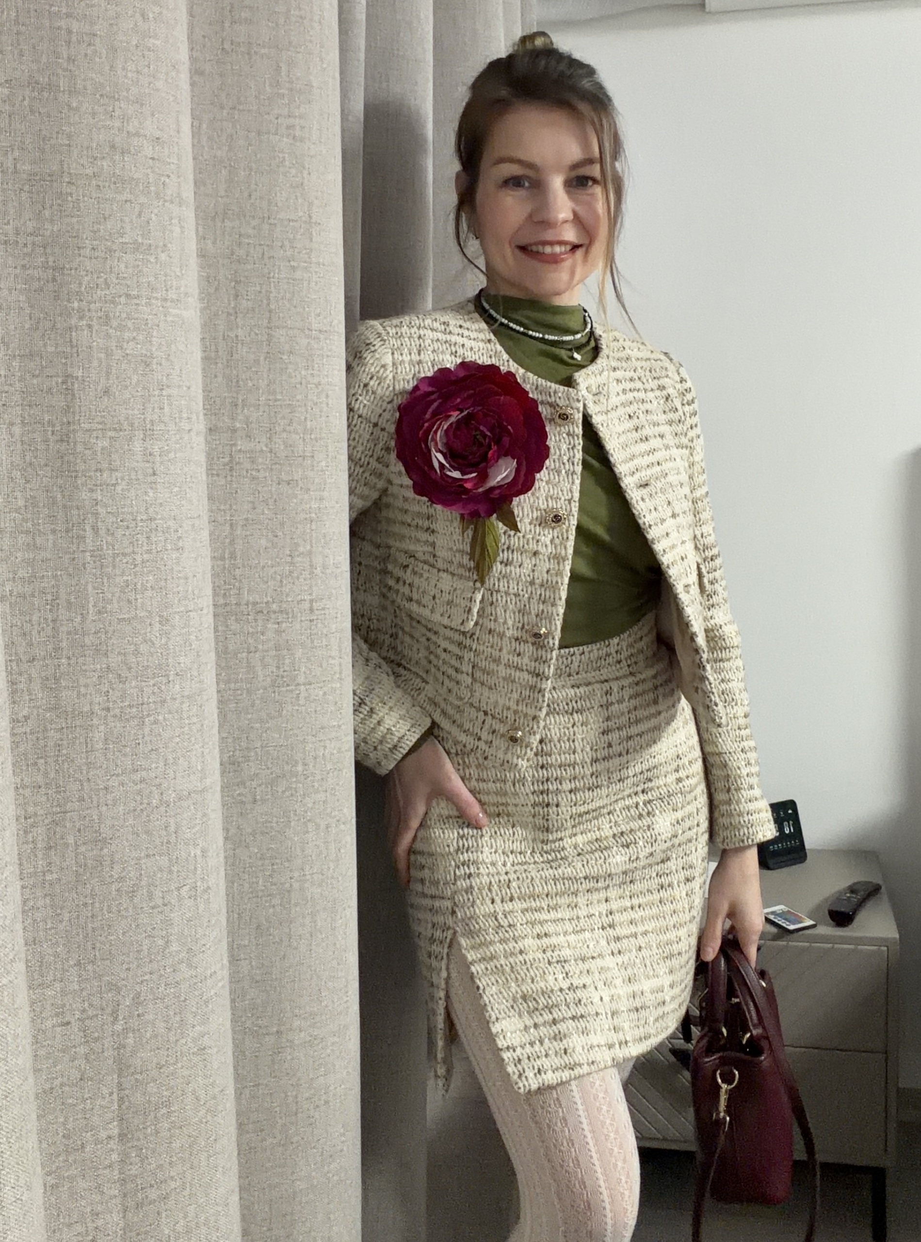 Отличная выкройка! Сшила к юбке жакет Эшли. Я новичок-самоучка, но по видеоинструкции шить было очень легко, получилось как в ателье! Параметры у меня точно как у Лены, 44 размер сел как влитой. Спасибо Леночке и всей команде, теперь буду шить такой костюм из твида.