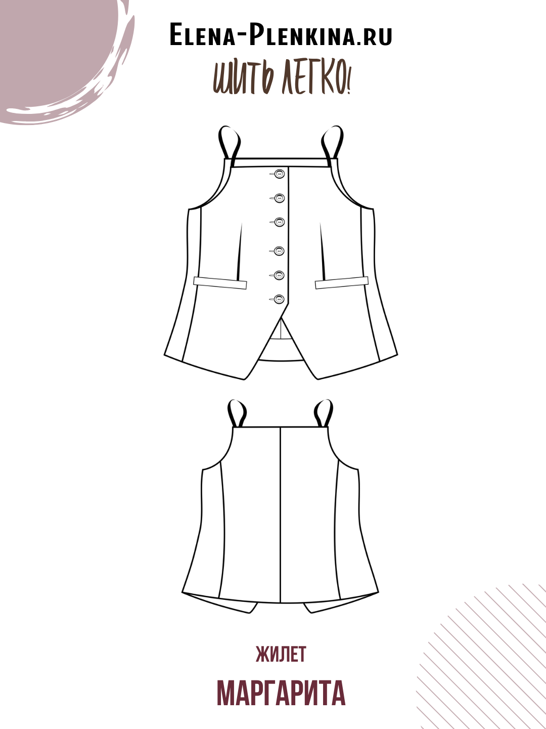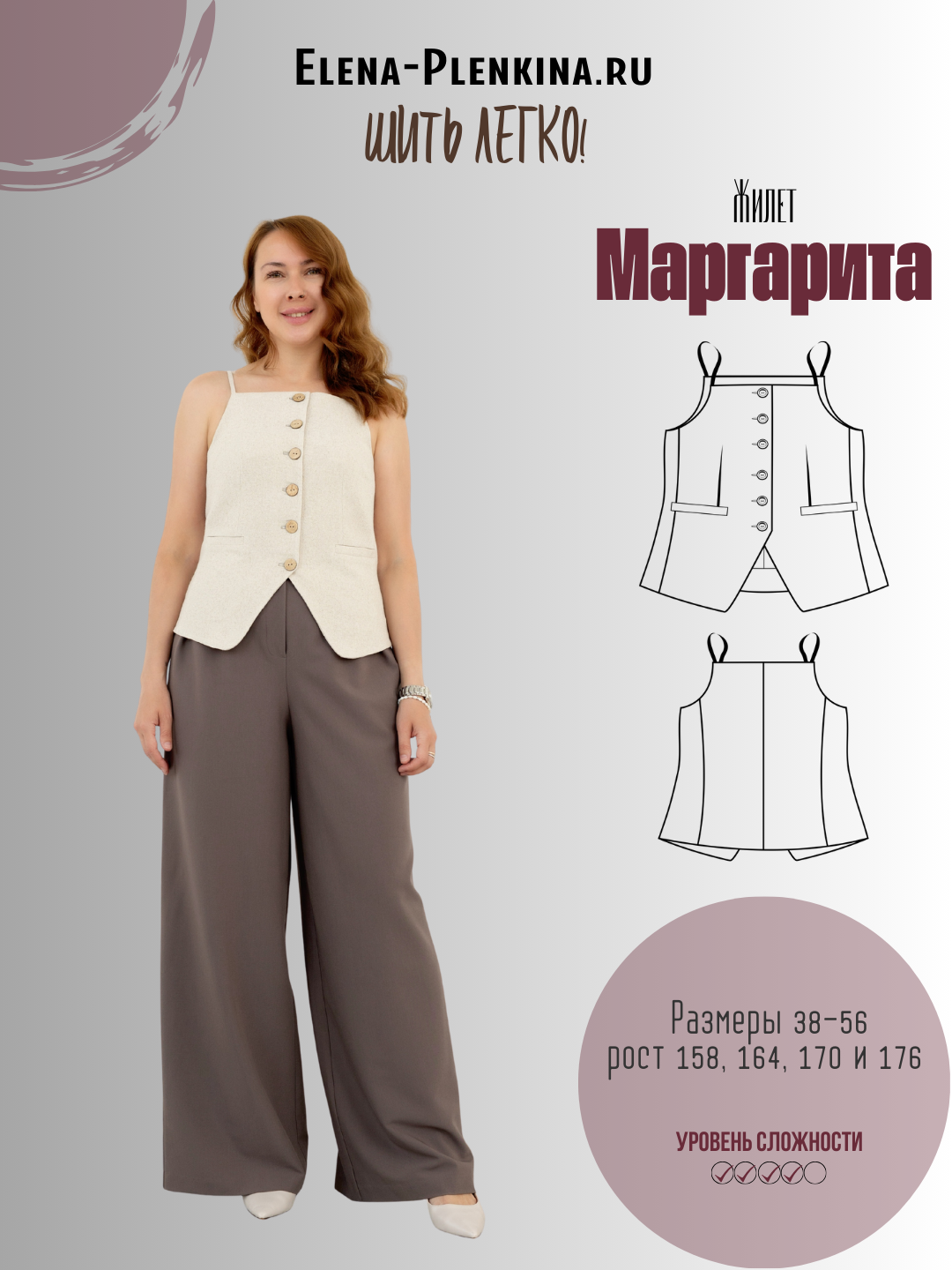 Жилет красивый, женственный. При пошиве сложностей не возникло, инструкция понятная. Ничего не меняла, выкройку выбирала по ОГ.